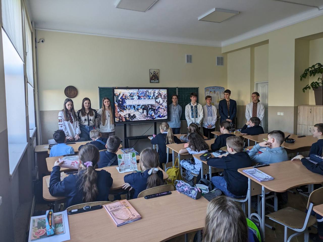 У нашій гімназії теж вшанували пам'ять полеглих за незалежність молодих людей. Учні 10-Б класу разом з класним керівником Козак І.І та вчителем історії Гупало О.М провели виховні години для 5-тикласників і 6-тикласників. Розповіли про події того трагічного дня та хвилиною мовчання вшанували пам'ять полеглих героїв...
