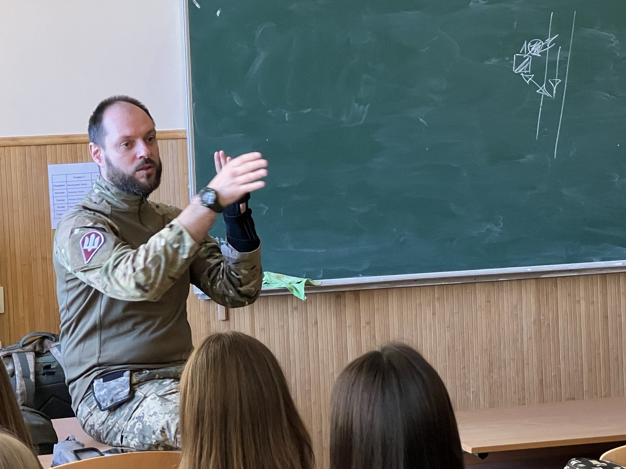 До заходу були залучені учні 9 - 11 класів. Дружня бесіда, практичні поради від нашого Воїна, мудрі розважання історика, щирі обійми, емоції - те, що запам'ятається усім. Бажаємо Андрію міцного здоров'я та Перемоги, на яку усі ми так чекаємо!