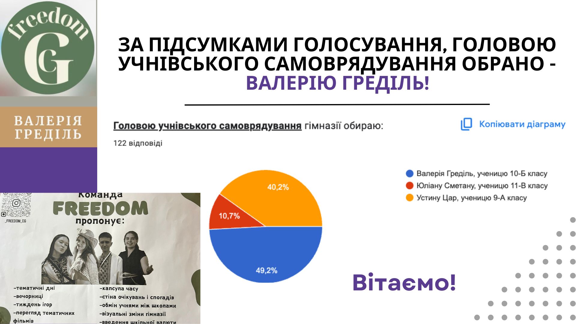 Валерія Греділь - голова Учнівського Самоврядування!