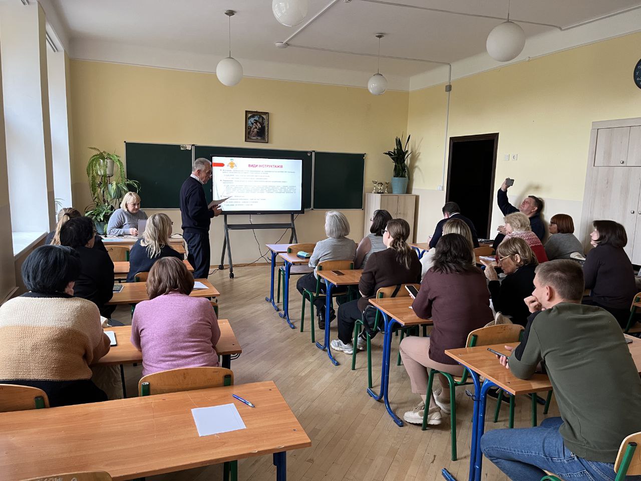 28 жовтня відбулася друга лекція із серії навчань з охорони праці та безпеки життєдіяльності для працівників гімназії. Її провели заступник директора з НВР Заверуха Н.В. та фахівець з охорони праці Мізюнов О. М. На занятті опрацювали нормативно-правову базу документів, чинних у сфері охорони праці та ТБ, види інструктажів з працівниками та учнями, алгоритм дій при пожежі в закладі, актуалізували основні правила надання першої домедичної допомоги, випадки створення комісії для розслідування нещасних випадків. Навчання завершилося перевіркою знань з питань охорони праці та безпеки життєдіяльності. Усі педагогічні працівники справилися із перевіркою та підтвердили свій рівень знань.