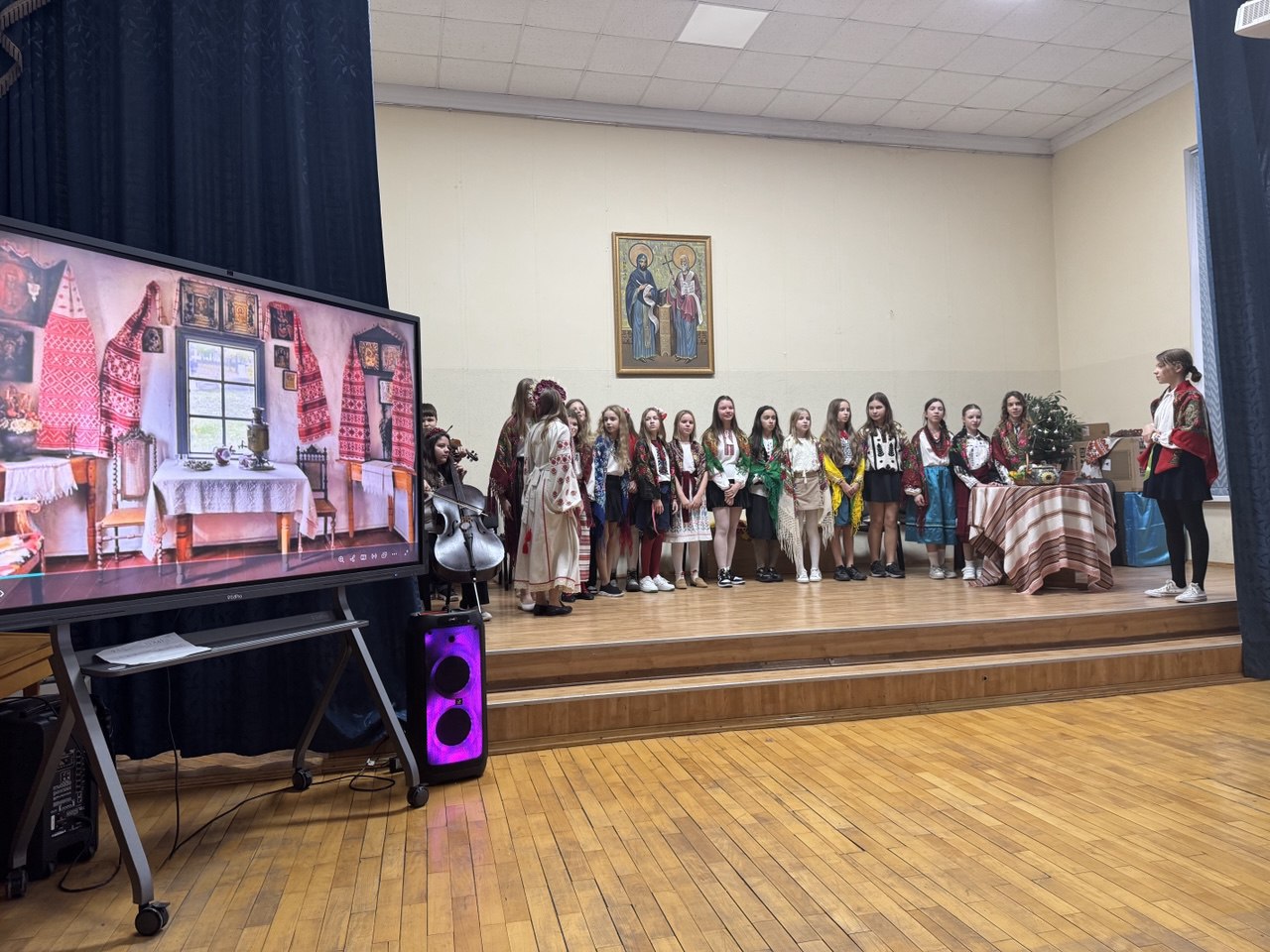 Щиро дякуємо усім батькам учнів 6-А класу, вони приготували пампухи, вареники, коровай теж пекла власноруч Салабай пані Таня! Калиту майстриня робила за спеціальним рецептом! А скільки радості і тепла подарували діти усім! Весь зал колядував, щедрував, співав!