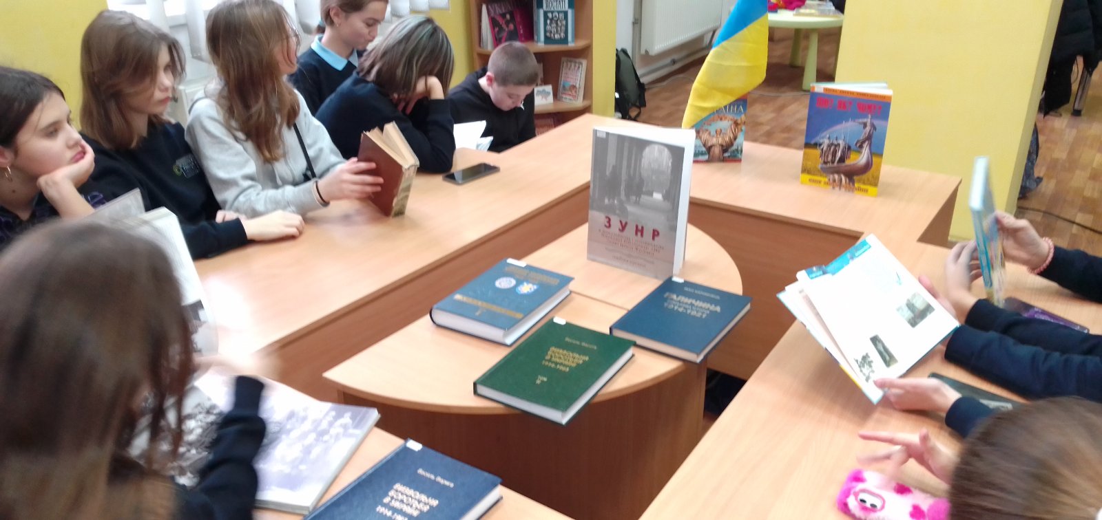На семикласників чекали приємні миті знайомства з історією бібліотеки, перегляд тематичного відео, присвяченого Дню Соборності і... вікторина. Питання, конкурси, змагальний дух - гімназисти були у захопленні! І знову ж таки, прикметно, тривога нам не завадила завершити чудову справу.