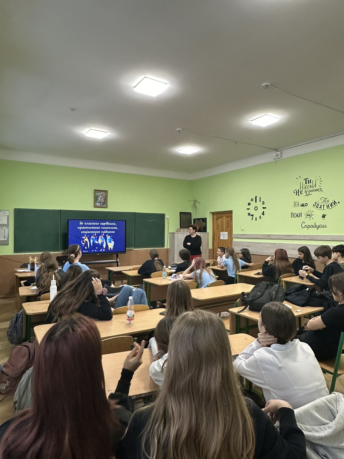 У середу класний керівник 7-Б класу Гось О.В. обговорили з дітьми проблему булінгу, вияснили причини, наслідки, способи протидії та відпoвідальність, які несуть всі учасники. Відшукали новий метод кардинально протилежний - гледінг, який спрямований на розвиток позитиву, здорових стосунків у колективі та виховання молоді готової прийти на допомогу у біді і радості.