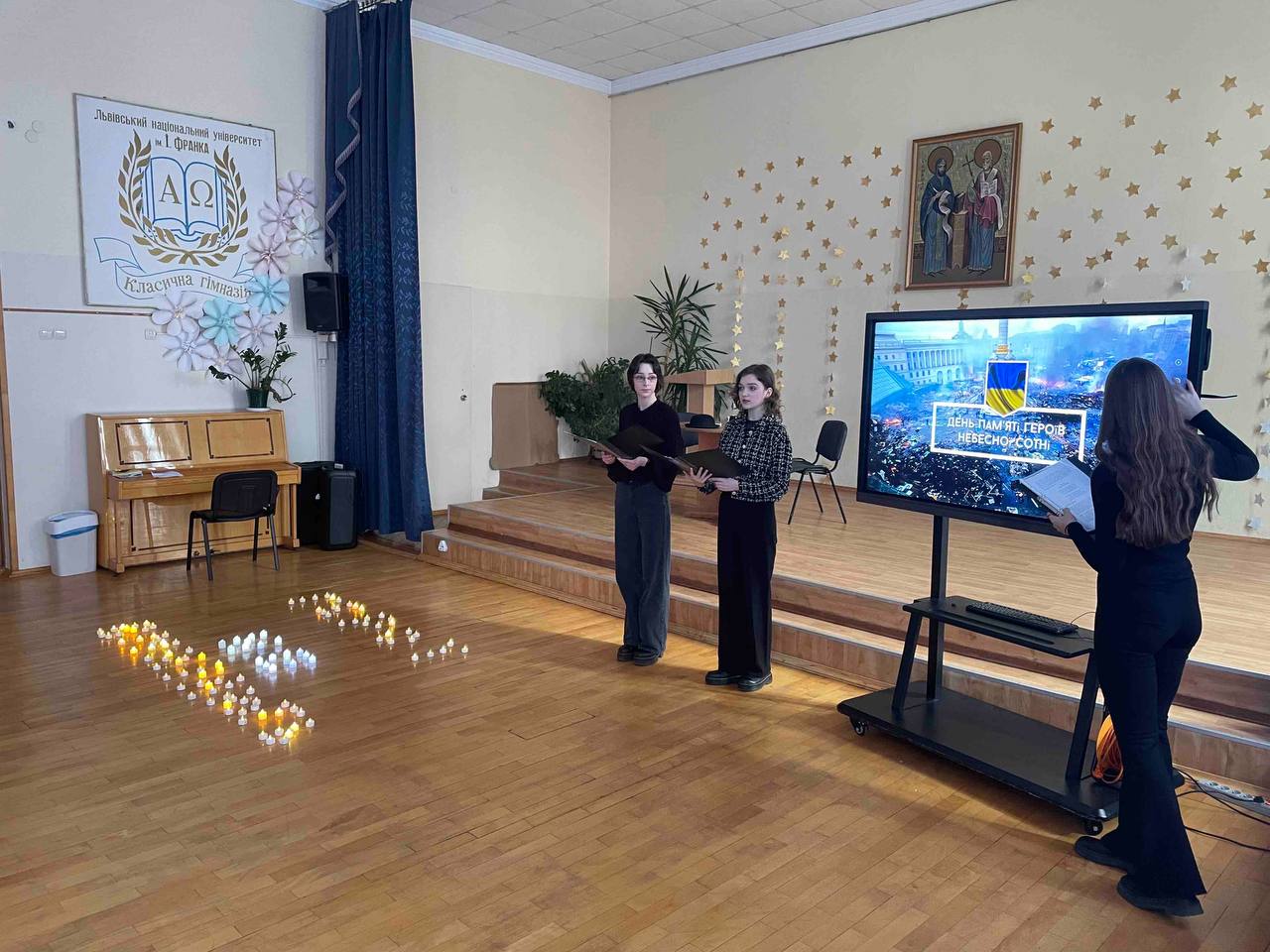 20 лютого учні 8-Б класу разом з класним наставником Саганською О.Р. та студентками-практикантками ЛНУ ім. І. Франка кафедри класичної філології провели урок-спогад про трагічні події, які відбулися 10 років тому під час Революції Гідності. На основі матеріалів альманаху “Енциклопедії Майдану” режисера Сергія Лисенко, гімназисти ознайомились з короткими життєписами деяких особистостей, які стали небайдужими в період спалаху громадянської активності в Україні. Учні вшанували героїзм українських захисників, згадали тих, хто сьогодні зі зброєю в руках захищає суверенітет України, хвилиною мовчання вшанували пам'ять синів України…