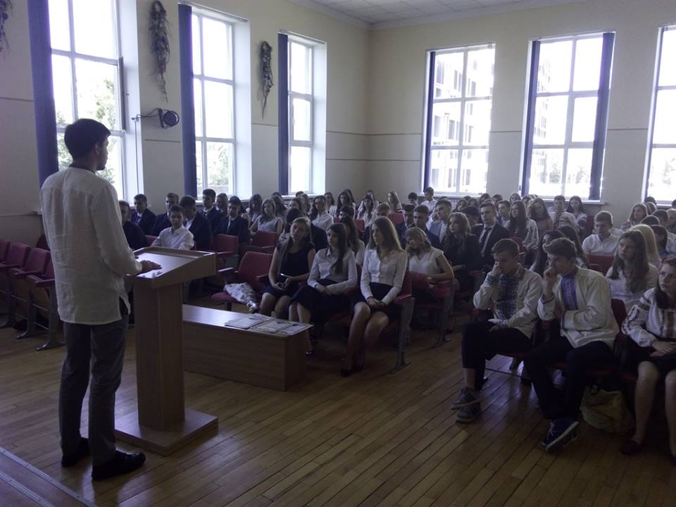 Перший урок для учнів 10-11 класів провів випускник гімназії, волонтер, громадський активіст і віднедавна спеціальний помічник Міністра закордонних справ України з питань політв`язнів Юрій Яценко. Підсумком заняття стала пропозиція написати листи до в'язниць Росії 28 українцям-політв`язням.