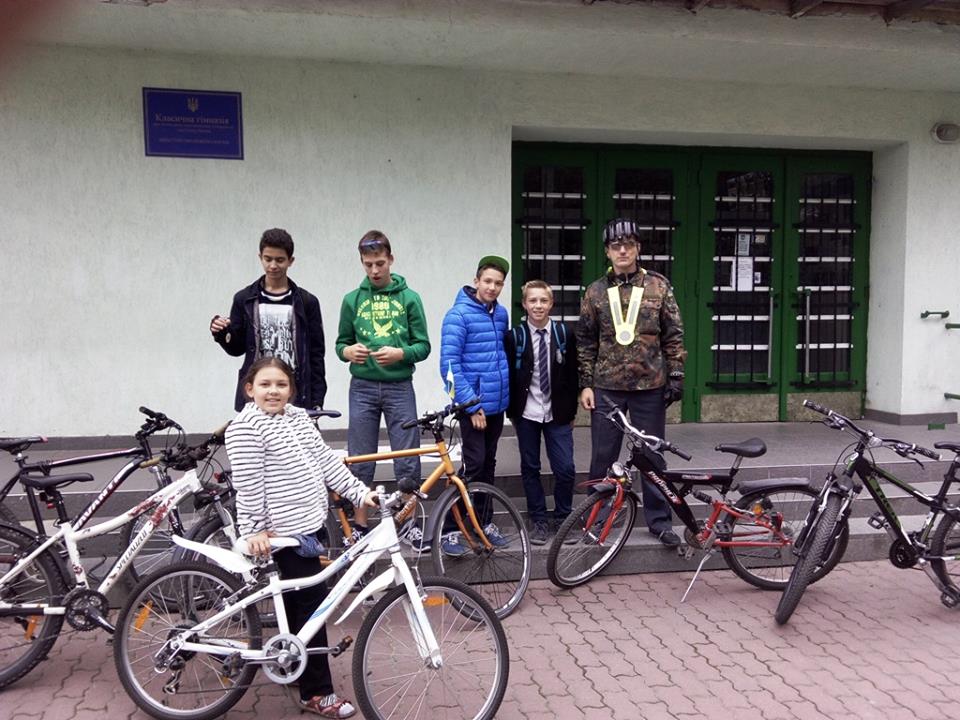 З нагоди тижня безпеки руху адміністрація Гімназії організувала велофлешмоб. Він не був масовим, хоча пропозицію висунули самі учні, яким сподобалась ця акція навесні цього року. На жаль, неможливо поки що залучити до неї батьків та вчителів, навіть тих, хто є прихильником велосипедного руху. Акція проходила під загальним гаслом "Зробимо Львів дружнім до велосипедистів!". Також були створені два плакати з закликом до автомобілістів проявляти повагу до людей на велосипедах та бути уважними на дорозі, дотримуватись безпечної поведінки. Гімназія послідовно бореться за поширення ідей пересування екологічним та корисним для здоров`я способом, тому всі на велосипеди!