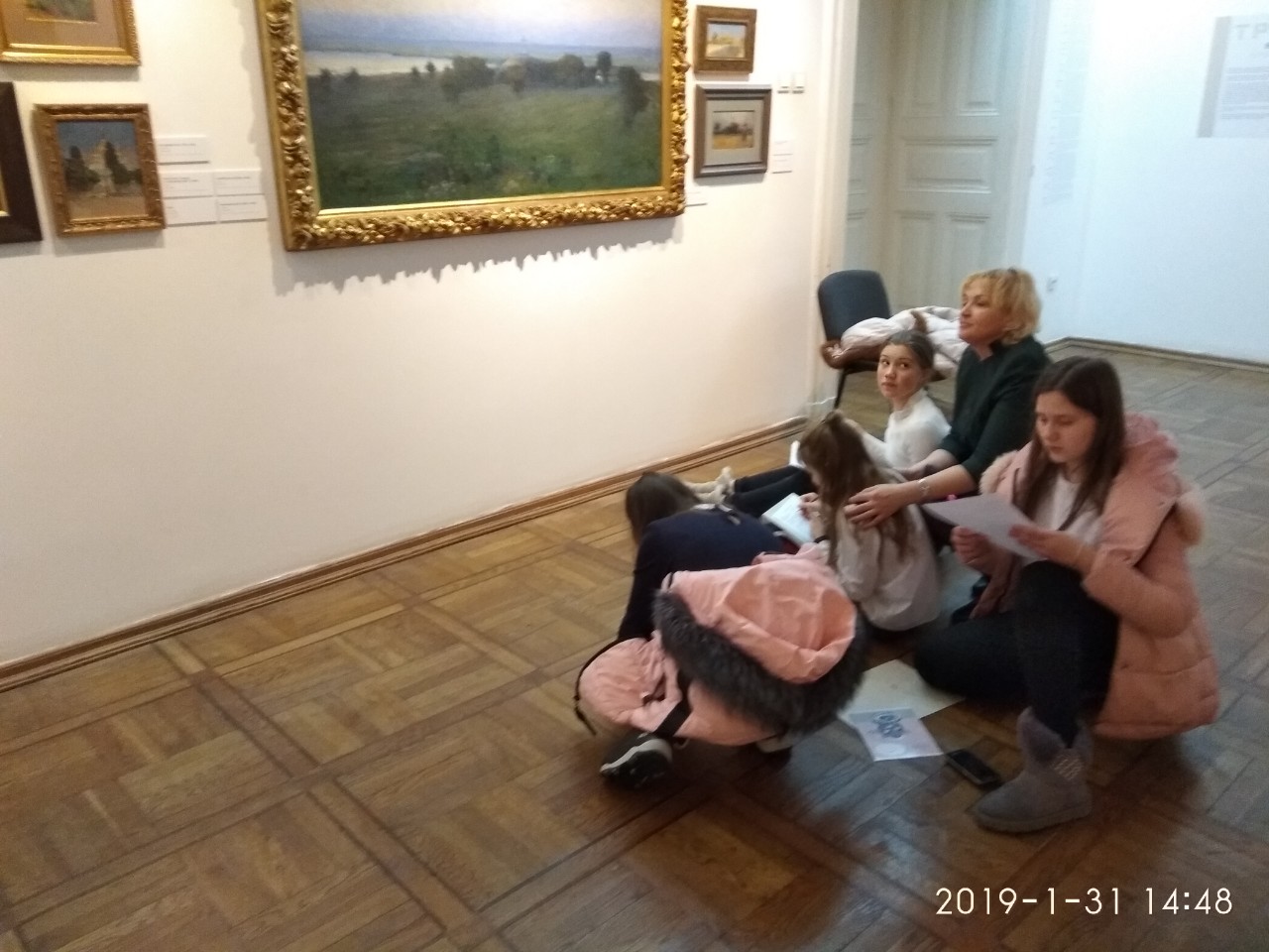 Спочатку гімназисти мали екскурсію залами музею, зокрема ознайомилися із полотнами І. Труша. Виставка творів цього українського художника-імпресфоніста редставлена у музеї полотнами з циклів "Наддніпрянщина", "Гуцульщина", "Крим", "Італія". Екскурсоводи пояснили учням як по-мистецьки правильно характеризувати живописний твір. Шестикласники самі обирали картини, які їм сподобалися, і тут же, у залах музею, працювалинад твором-описом природи за картиною.