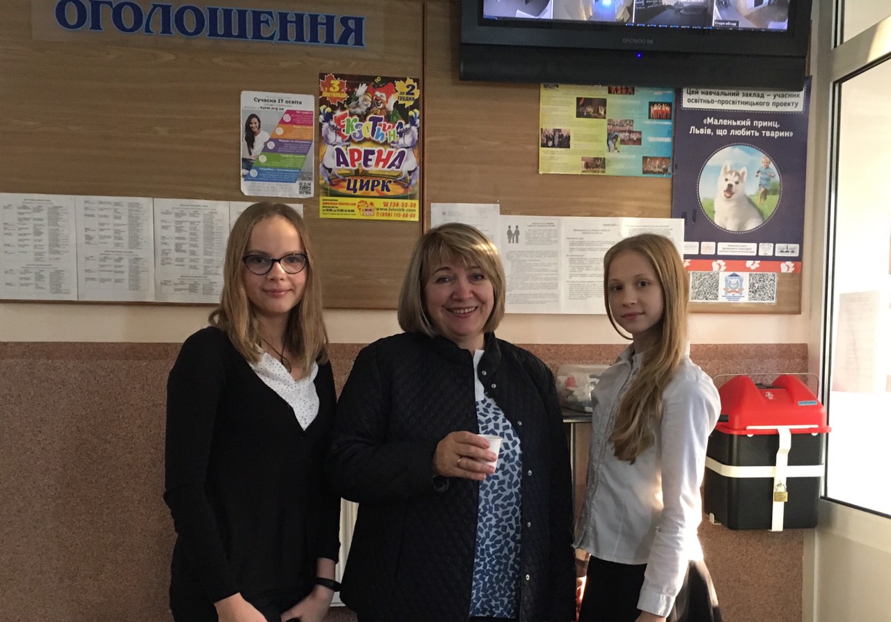 В рамках програми Healthy School учні 8-В класу частували вчителів та гімназистів персиками та продуктами з ними (соки, йогурти).