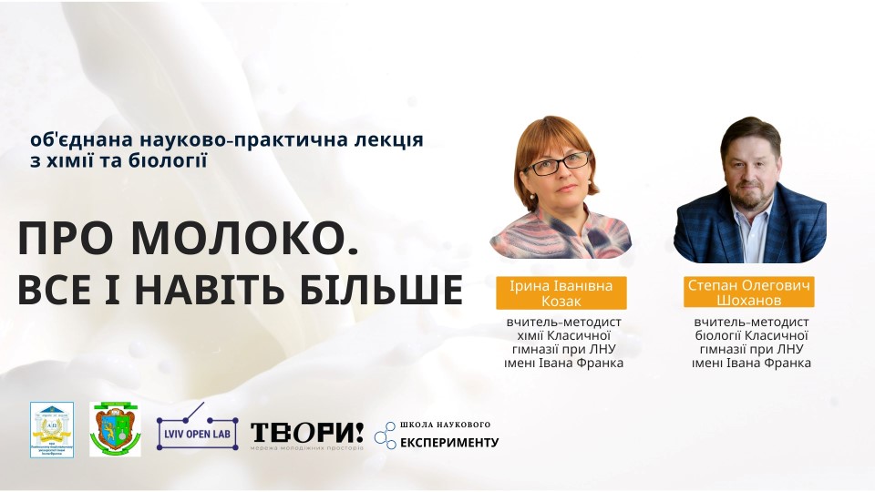 Що таке молоко? З чого воно складається? Молоко яких тварин споживає людина? Як воно засвоюється людським організмом і чим воно корисне? Кому слід утриматися від споживання молока? Скільки молока виробляють у світі та в Україні щороку і як його зберігають? Саме про це дізналися учасники науково-практичної лекції з хімії та біології "ПРО МОЛОКО. Все і навіть більше".