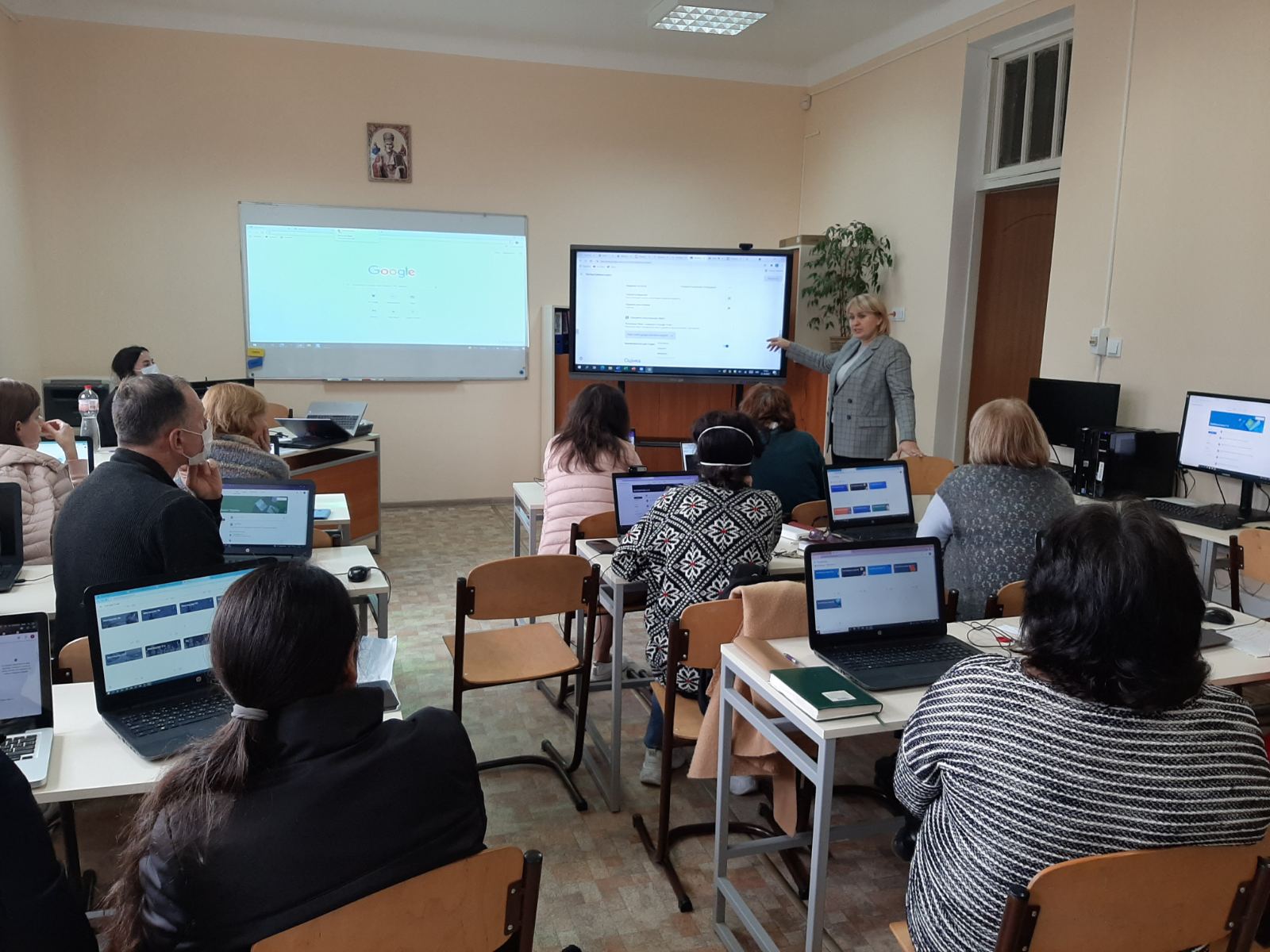 Вчителів було поділено на дві групи, кожна з яких працювала у різний час. Педагоги, використовуючи корпоративні адреси Google Workspace, навчилися: