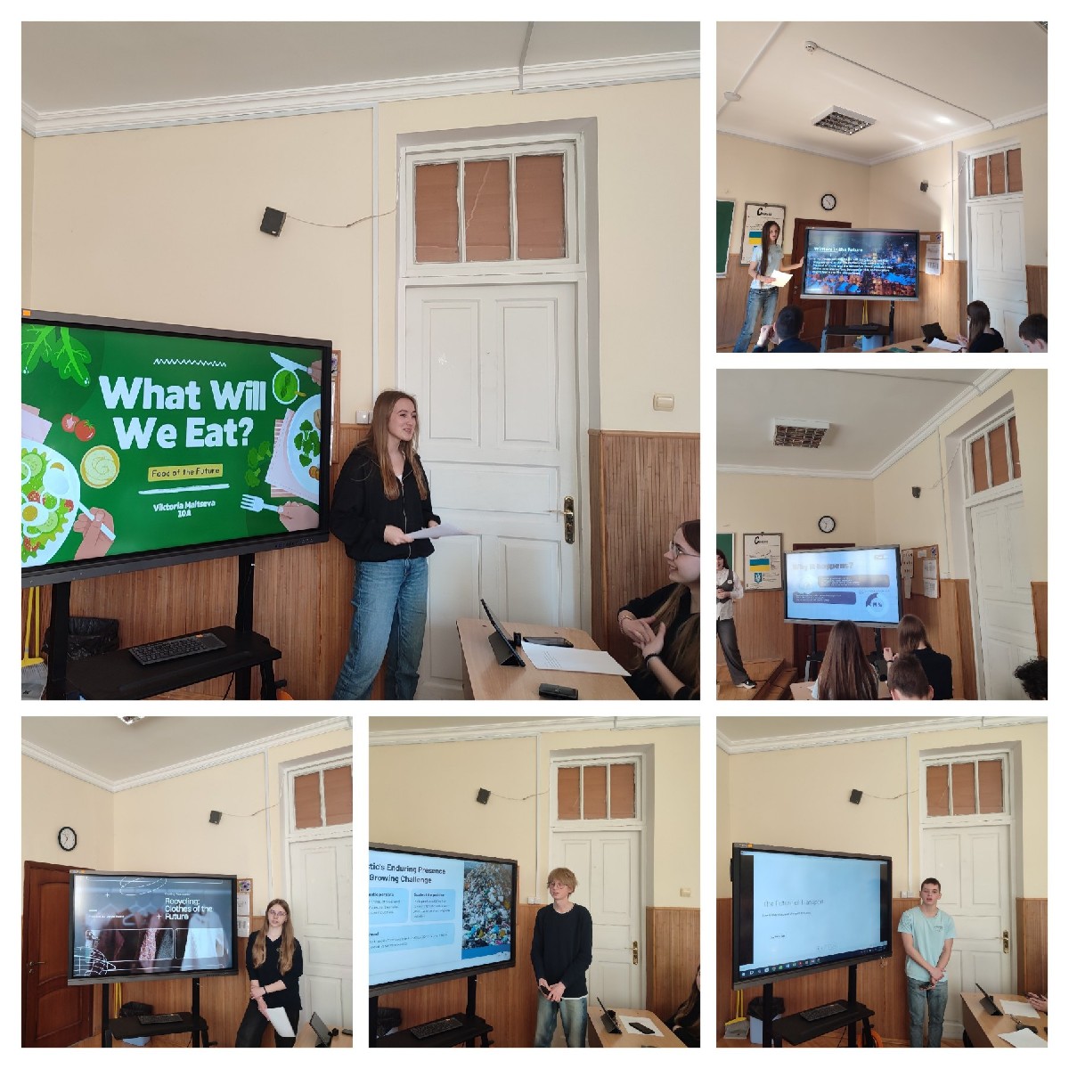 Учні 10-А та 10-Б під керівництвом Демчишин Л.М. показали вміння як провести переконливу презентацію. Головною темою було майбутнє "Our future is in our hands." Учні висловлювали своє бачення майбутнього і як його покращити. Було цікаво та пізнавально. В кінці вчителі та учні мали нагоду проголосувати за найкращі роботи. Всі учні великі молодці!
