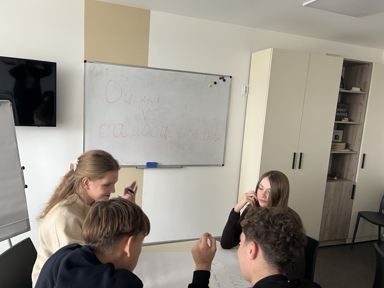 20 листопада учні 11-Б класу разом із заступником директора та вчителькою української мови Марією Глібкович провели диспут на тему: «Оцінка vs самооцінювання. Інструменти контролю чи розвитку?»