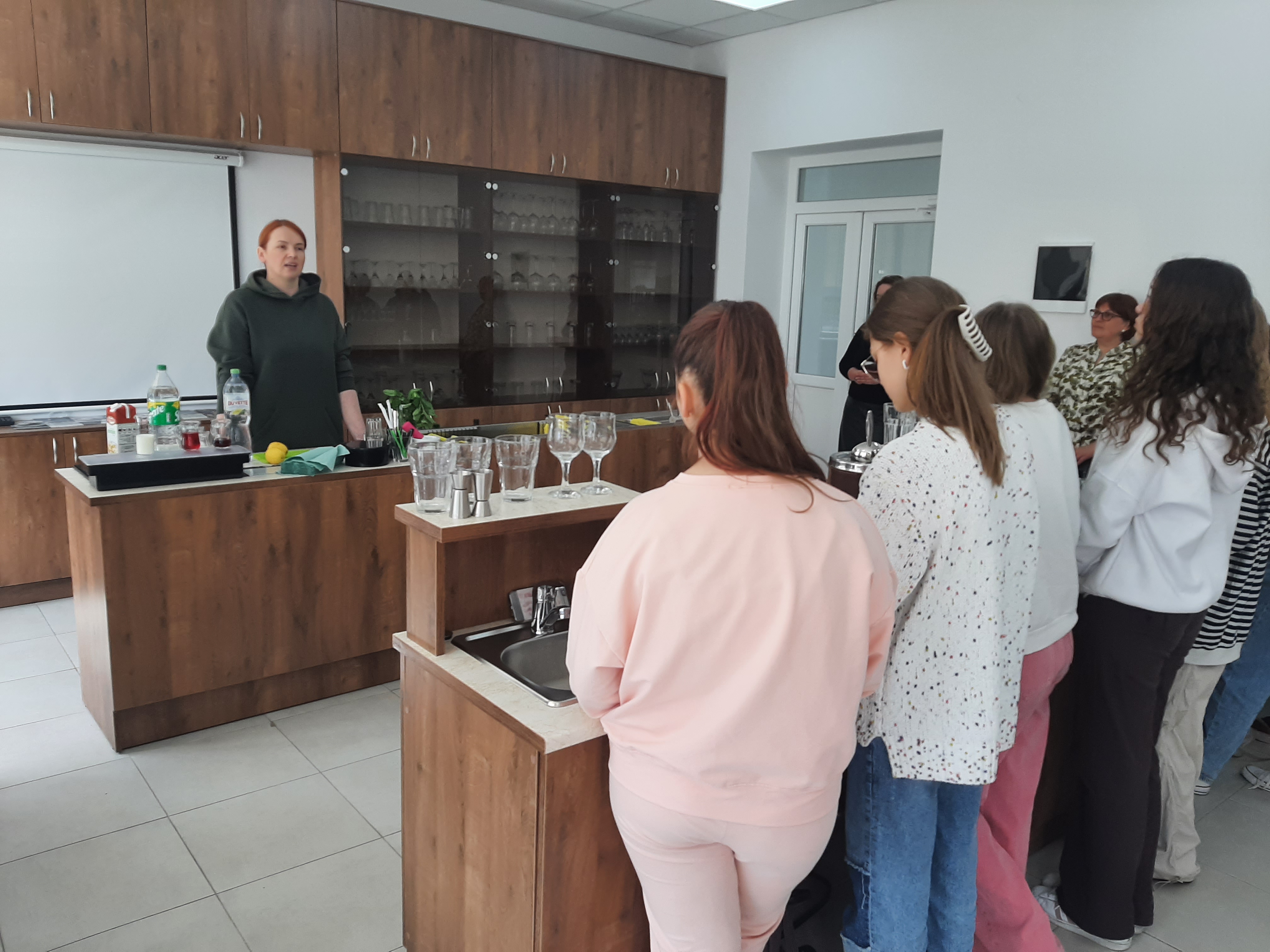 Після невеличкої екскурсії навчальним закладом гімназисти мали нагоду власноруч виготовили і скуштувати смачні коктейлі та пригостити своїх вчителів.