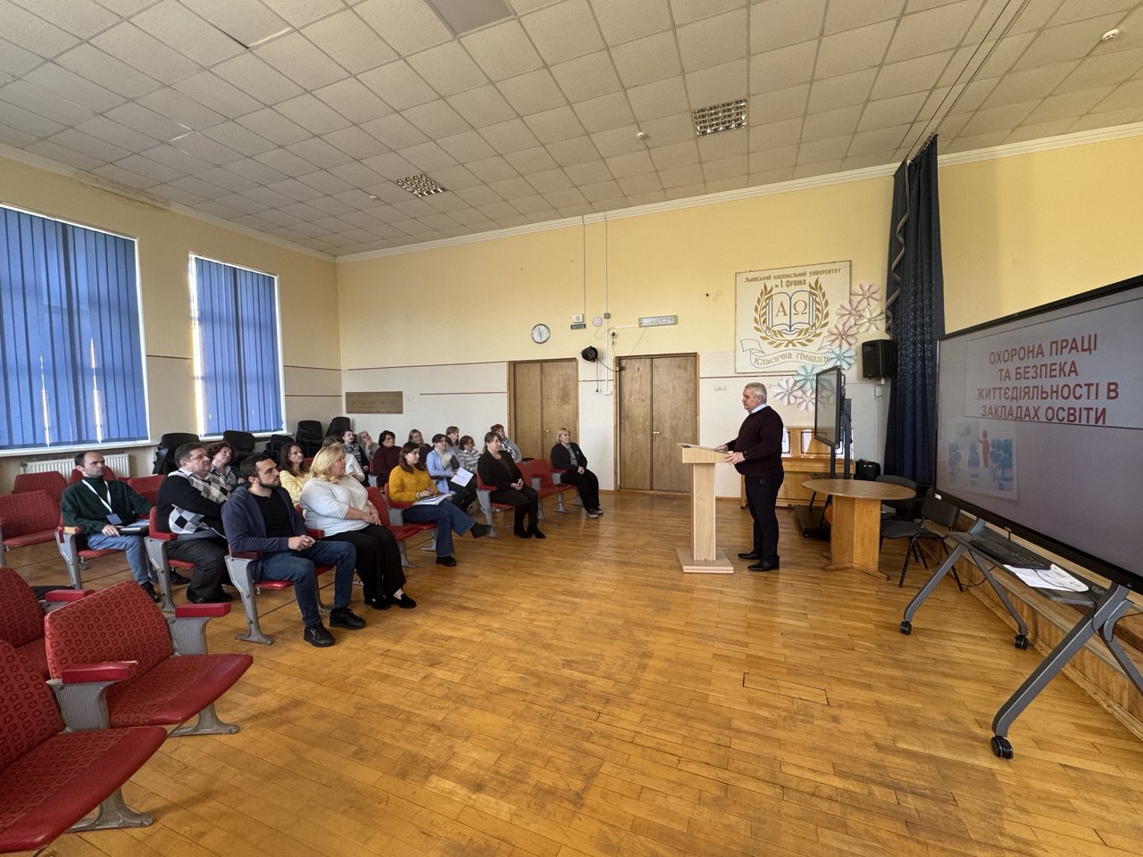20 жовтня директор гімназії Юрій Джала провів першу лекцію із серії навчань з техніки безпеки та охорони праці для працівників закладу. Наступні заняття очікуємо 28 жовтня.