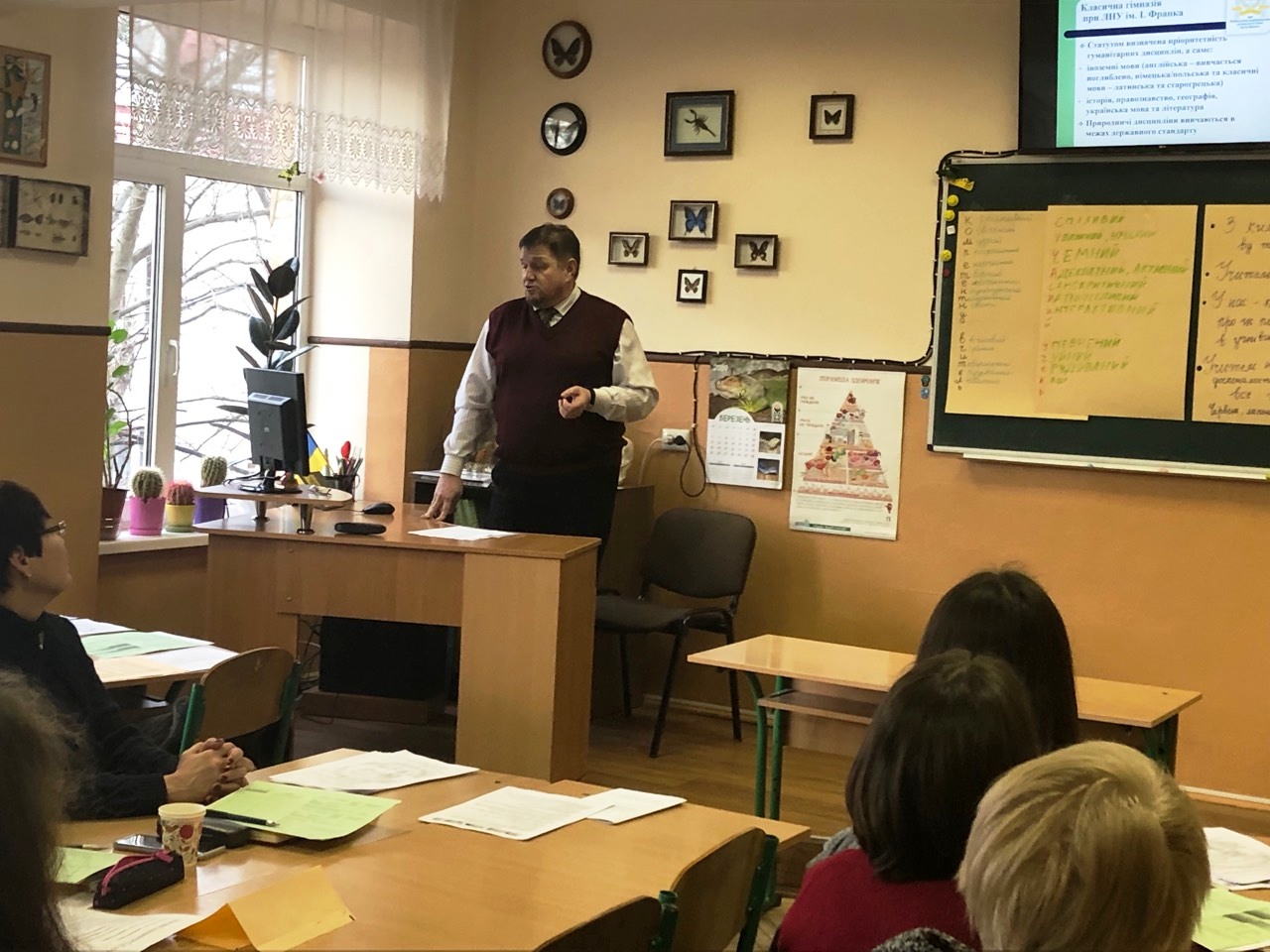 1 березня на базі Ліцею міжнародних відносин ім. В. Стуса ЛР відбувся методичний семінар для вчителів біології м. Львова "Викладання біології в навчальних закладах гуманітарного профілю". Семінар був організований Навчально-методичним центром освіти. В роботі семінару брав участь вчитель біології Класичної гімназії Шоханов С. О., який поділився із своїми колегами власним досвідом викладання природничої дисципліни в умовах гуманітарного навчального закладу. У своєму виступі вчитель зазначив, що в Класичній гімназії відмовилися від суто механічного, екстенсивного шляху розв’язання проблеми