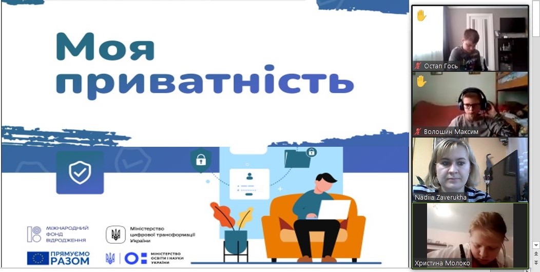 8 лютого – Всесвітній день безпечного Інтернету. З нагоди цієї події заступник директора з НВР, вчитель інформатики – Заверуха Н.В. провела для учнів двох п’ятих класів у форматі зум-конференцій тематичні уроки: «Моя приватність». Вчителька пояснила дітям ризики, які виникають після розголошення персональної інформації, можливі наслідки публікацій фотографій в соціальних мережах. П’ятикласники висловлювали свої думки щодо того, чим відрізняється приватність в реальному світі від приватності у світі онлайн. На віртуальній дошці Jamboard кожен учень мав можливість записати свій улюблений вебсайт, соціальну мережу чи додаток, а після цього жваво подискутувати з приводу того, яку саме особисту інформацію збирають записані ними на дошці інформаційні ресурси. На завершення уроку діти назвали відомі для них загрози в мережі Інтернет, а також продемонстрували власноруч намальовані до уроку ілюстрації з нагоди Дня безпечного Інтернету.