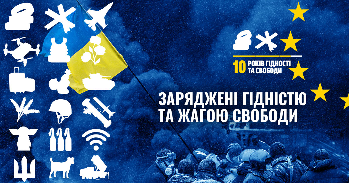10 років тому, 21 листопада 2013 року, на майдан Незалежності у Києві вийшли кілька сотень людей, щоб висловити свій протест проти рішення влади, яке загрожувало Україні втратою незалежності та перекреслювало її європейське майбутнє. Того листопадового вечора ніхто не здогадувався, що в історії не тільки України, а й усього світу починається новий етап і що події, які відбуватимуться наступні 94 дні – перший крок на шляху до драматичних геополітичних змін. Їх тригером стало продовження боротьби українського народу, що велася не за матеріальні блага чи владу, а духовні цінності – Гідність і Свободу. Цінності, про які у Європі не говорили, бо вважали їх очевидними, про які в росії мовчали, бо вважали їх небезпечними.