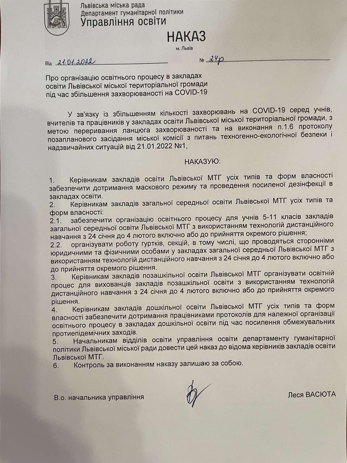 Про організацію навчання в гімназії під час збільшення захворюваності на COVID-19