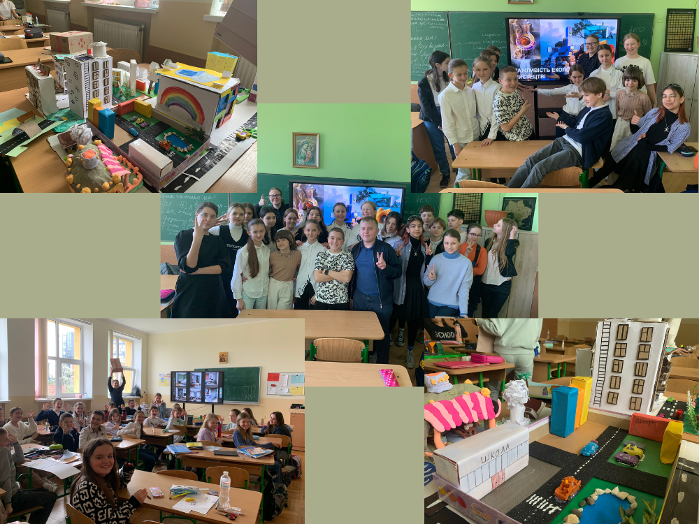 До річниці Чорнобильської трагедії у 6-Б і 5-А класах вчитель мистецтва Грунтковська Андріана Григорівна провела тематичні уроки присвячені зв'язку екології та містобудування. Говорили про важливість збереження природи, що таке екологія та як вона пов'язана з мистецтвом на прикладах архітектури та дизайну. Гімназисти були вражені новими ідеями та тенденціями поєднання природи та технологій в сучасному містобудуванні. 5 клас навіть розробив спільний макет еко-міста.