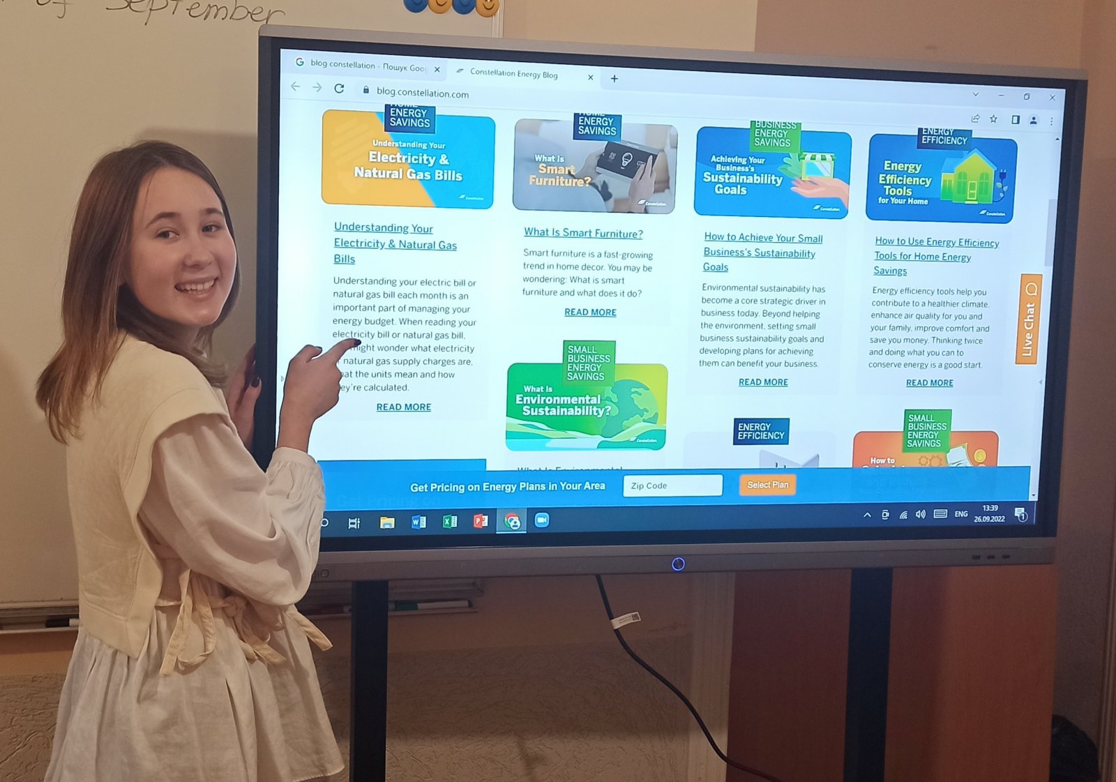 Учні 11-А класу на уроці англійської мови з вчителем Курською Оксаною Іванівною мали обговорення теми енергозбереження, в рамках тижня присвяченого енергозбереженню та енергоефективності.