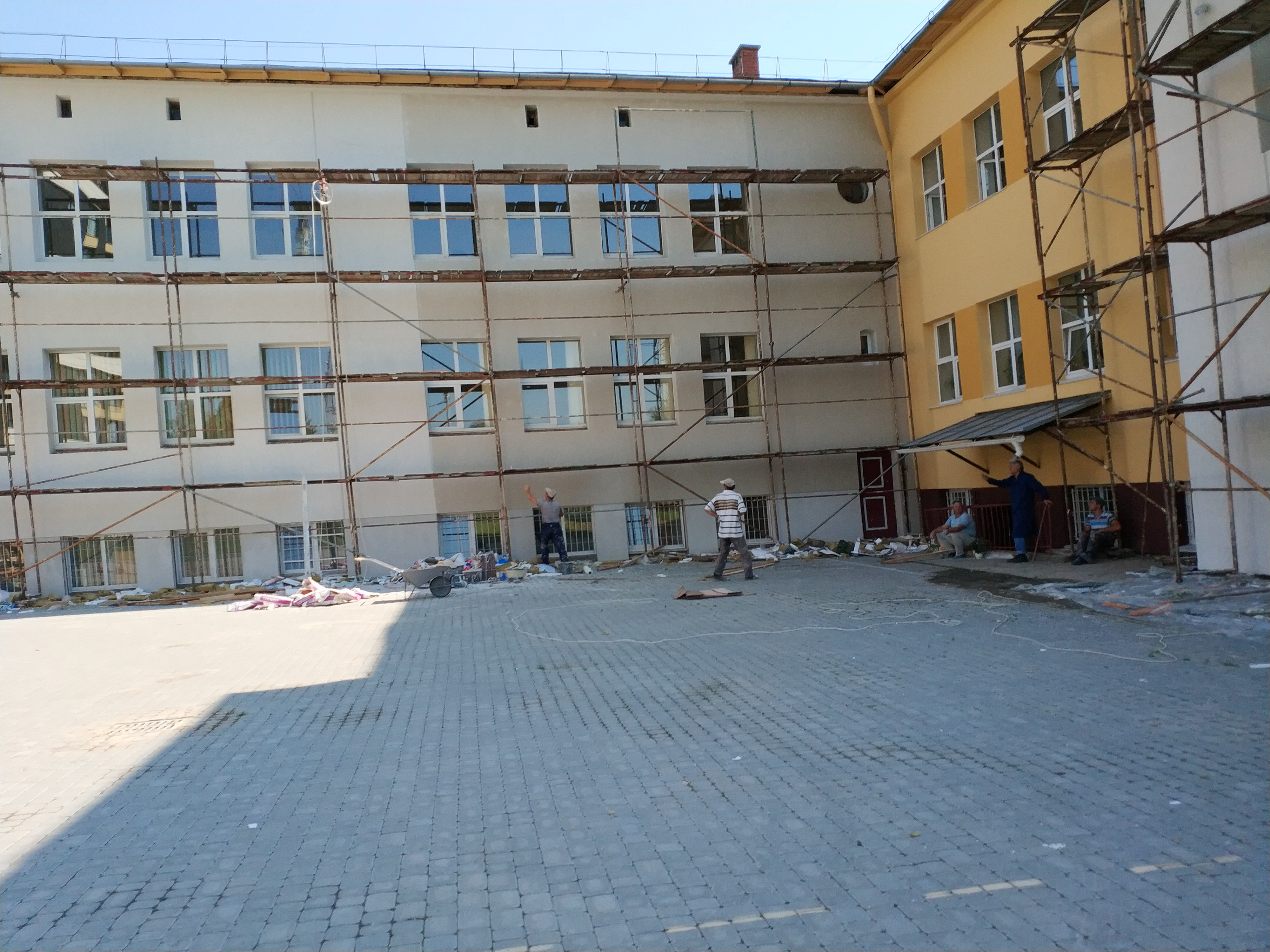утепленням стін з метою енергозбереження ЛКГ по вул. Порохова, 3 у м. Львові» за підтримки батьків, обласного та міського бюджету, тривають роботи з утеплення фасаду стін, які виходять у внутрішній двір гімназії.