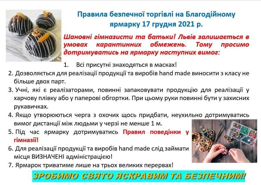 У п'ятницю 17.12. буде проведено щорічний благодійний Різдвяний ярмарок.