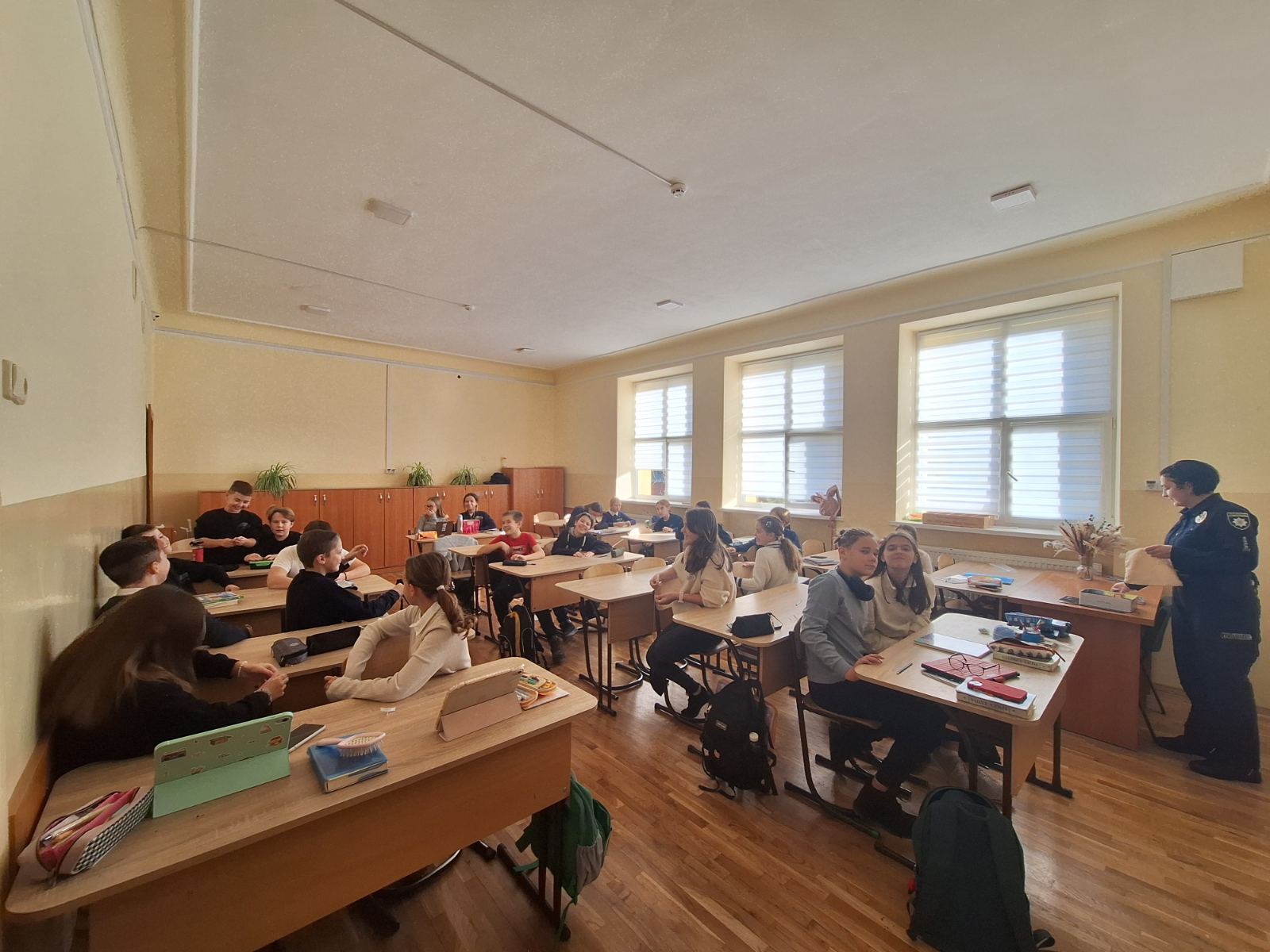 В лютому, інспектор поліції Ковалишин Андріана Романівна з інспектором ВСОБ УПП у Львівській області ДПП капітаном поліції, продовжили дбати про соціальну безпеку дітей, зокрема на тему безпеки в мережі Інтернет: кібербулінг і кібербезпека. Не зважаючи на дистанційне навчання, заняття проведено в 6-х і 7-х класах.
