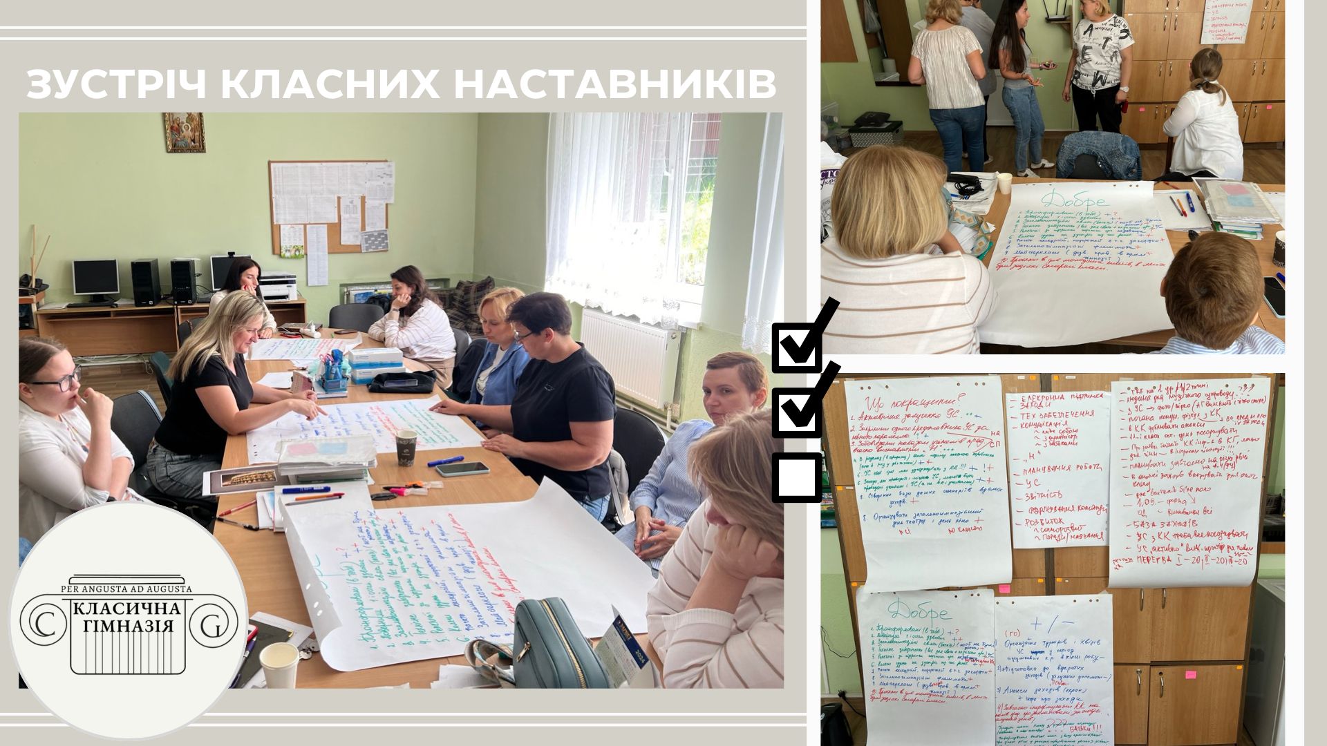 12 червня в гімназії відбулася зустріч класних наставників. Здивуєтесь, чому зустріч? Тому що у формі інтерактивного спілкування класні наставники спробували і підвести підсумки зробленого, і спланувати свою подальшу роботу з підопічними, а також свою позакласну роботу в гімназії.