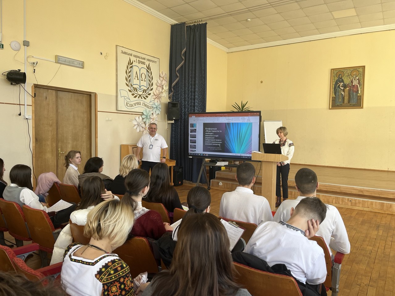 Напередодні Дня гідності та свободи, 19 листопада 2025 року, в гімназії відбулася Міська науково-дослідницька учнівська конференція «Мова гідності та свободи», на якій понад 30 юних науковців, учнів 8-11-х класів закладів освіти Львова, представляли свої дослідження.