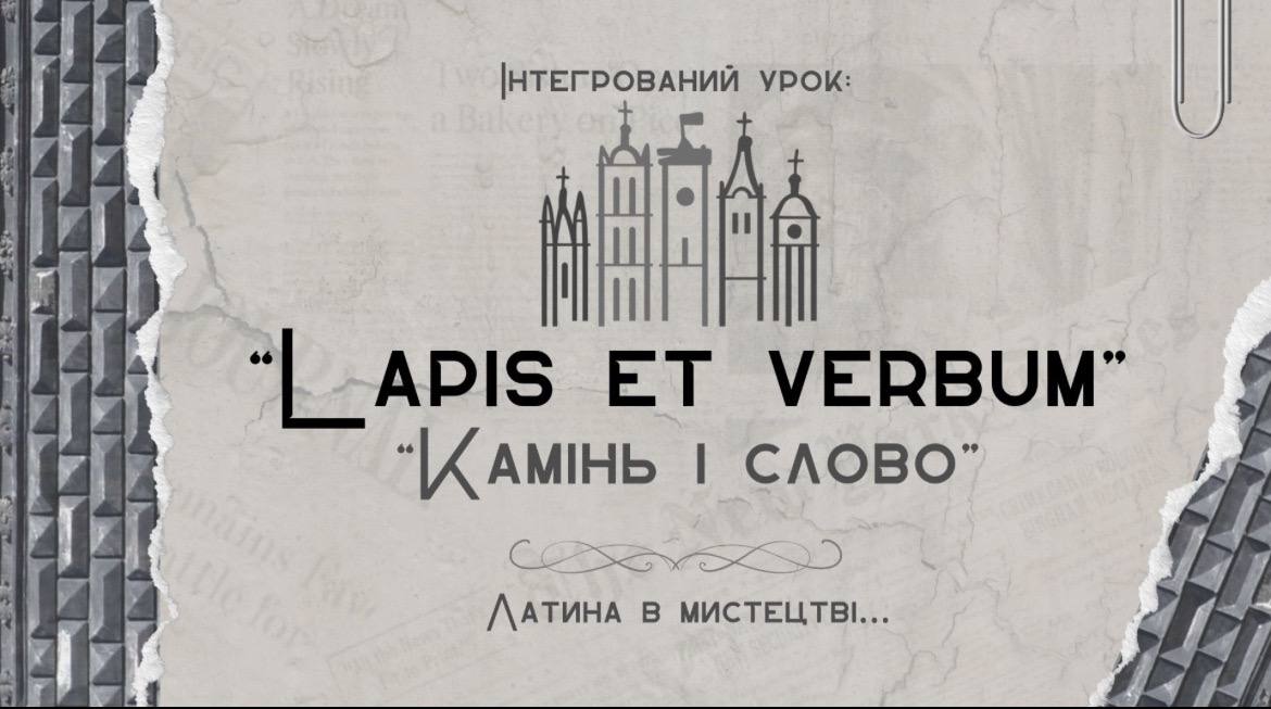 9 лютого у рамках декади проведення інтегрованих навчальних занять у 9-Б класі вчителі латинської мови Саганська О.Р. та мистецтва Грунтковська А.Г. провели інтегрований урок під назвою «Lapis et verbum» (“Камінь і слово”) на тему : «Латина в мистецтві. Латинські написи Львова».