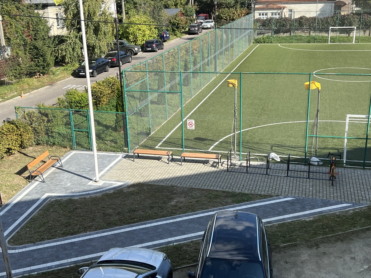 Простір перед спортивним майданчиком оновився новими лавочками та парковкою для велосипедів.