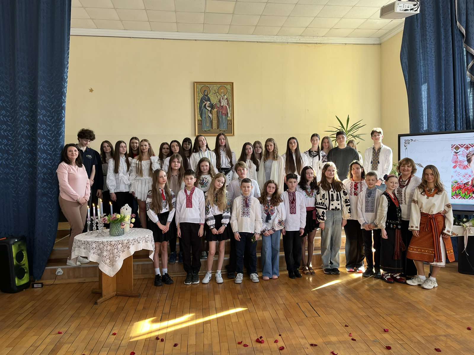 Оскільки інтимна лірика рельєфніше передає душевну біографію авторки, то ми , крім громадянської, патріотичної, звернули увагу на інтимну лірику Лесі Українки. Десятикласники читали вірші під музику Мирослава Скорика, Левка Лепкого, Фридерика Шопена. Атмосфера свята була ніжною і романтичною, особливо, коли 6-А виконав танго! Під «Гуцулку Ксеню», коли розсипалися з листів зів‘ялі троянди, а віртуозна гра на сопілці створила справжню галявину духа для Мавки ! Леся Українка і Україна - вічні!