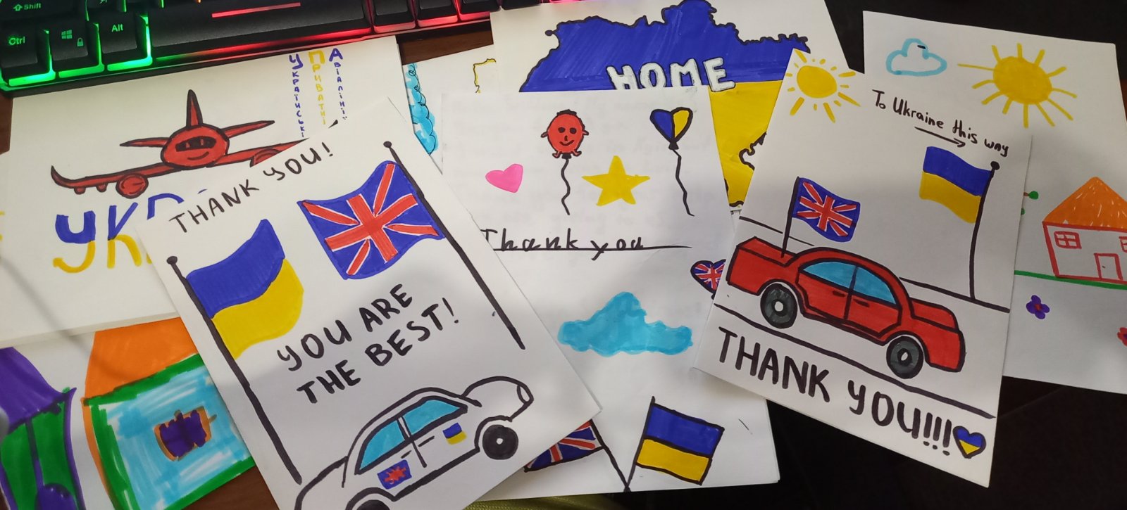 Під час короткого перебування у Львові волонтерів, діти передали листівки для наших великих друзів. Нині вони вже у Великій Британії. Індивідуально заадресовані, вони стали великим сюрпризом для добродіїв та грітимуть великі серця друзів України!!!