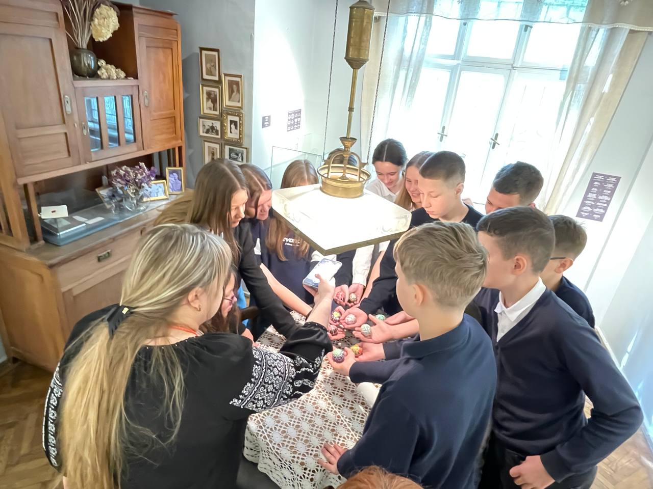 Під час екскурсії та майстер-класу від працівників музею діти дізналися про художника Івана Труша, історію виникнення та розпис писанок, а від вчителя хімії - про барвники, віск та інші хімічні речовини, які використовували під час роботи.
