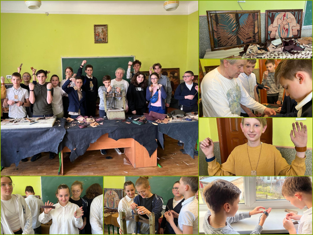 Навчитися виготовляти вироби зі шкіри власноруч? Все можливо. 23 березня для учнів гімназії відбувся майстер-клас із виготовлення прикрас зі шкіри: оберегів та браслетів з українською символікою. Гімназисти отримали можливість поспілкуватися зі справжнім майстром Володимиром Сидоренком та під його керівництвом виконати перші власні творіння зі шкіри. Учні отримали море позитивних вражень, а на згадку про цей день їм залишаться зроблені ними браслети і обереги.