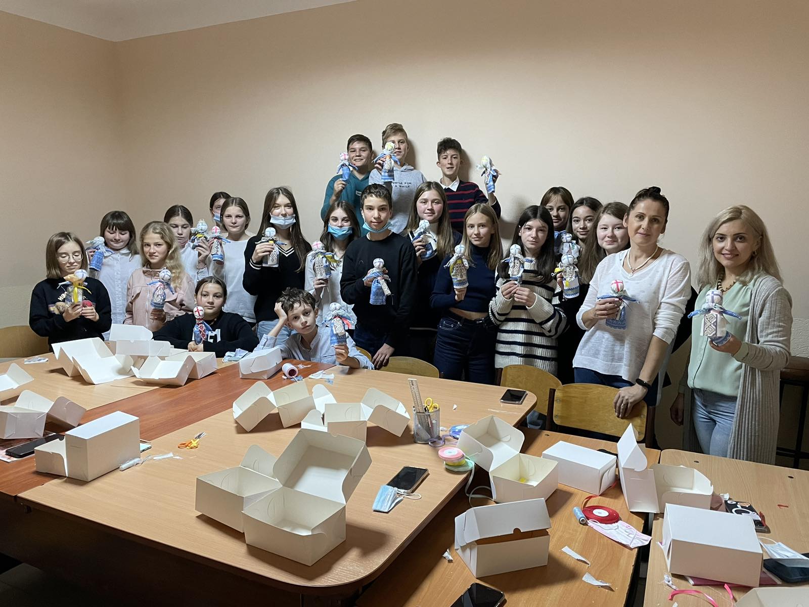Учні, разом із майстринею мотанок та української традиційної вишивки Оленою Тимків, майстринею текстильних іграшок Зоряною Шепітак та класним наставником Саганською Оленою, виготовили ляльки-мотанки, які будуть відправлені на благодійний ярмарок до сонячної Іспанії.