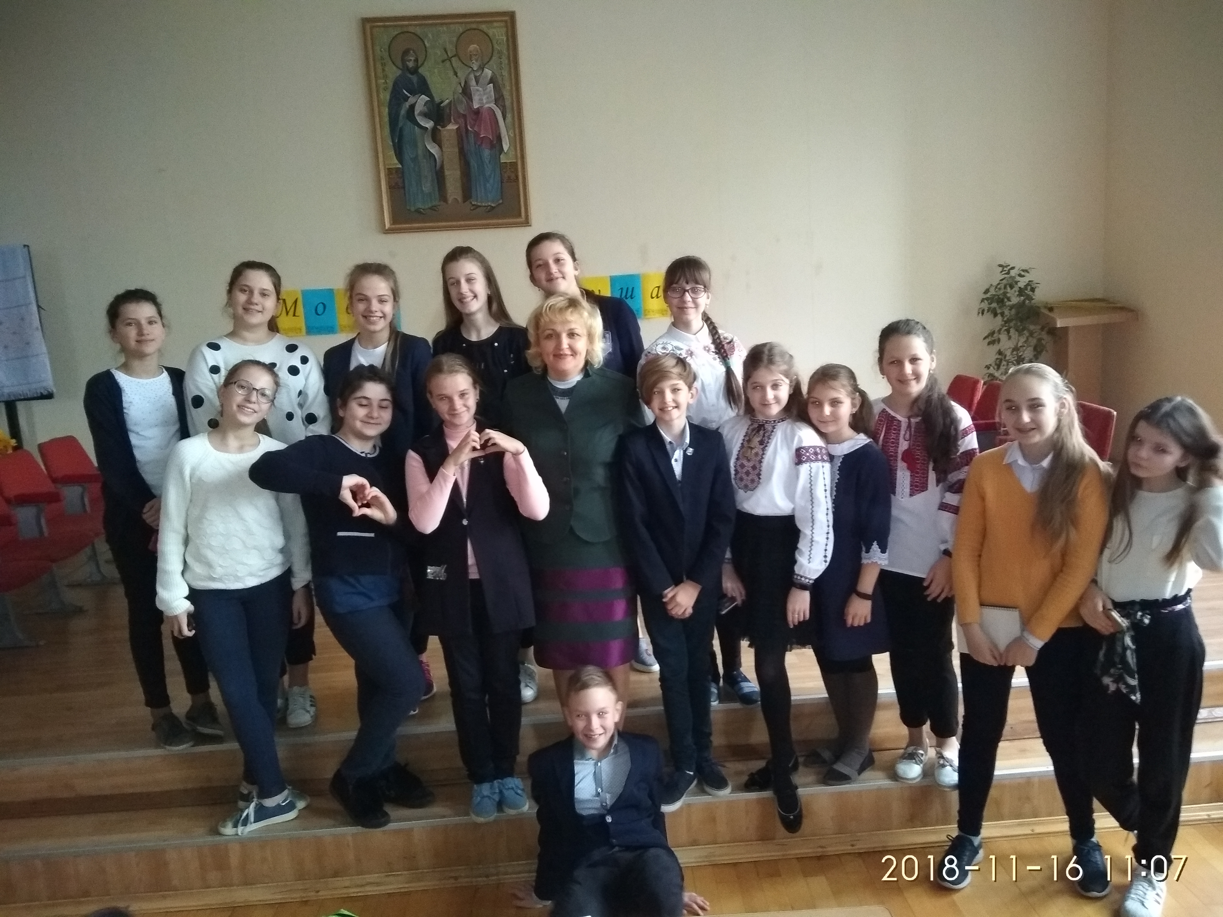 14 листопада між учнями 6-их класів було проведено брейн-ринг-"Хто найпрудкіший у мові". Дві команди:"Диво калинове" і "Мова солов'їна"-дуже швидко, правильно працювали. Особливе заворушення в залі викликали компліменти з порівняннями, гра із вболівальниками на редагування тексту від кальок. Цікавим є те,що команди зіграли внічию, тобто однаково добре діти володіють рідною мовою, відповідно, солодощі як приз отримали всі учасники! Молодці!