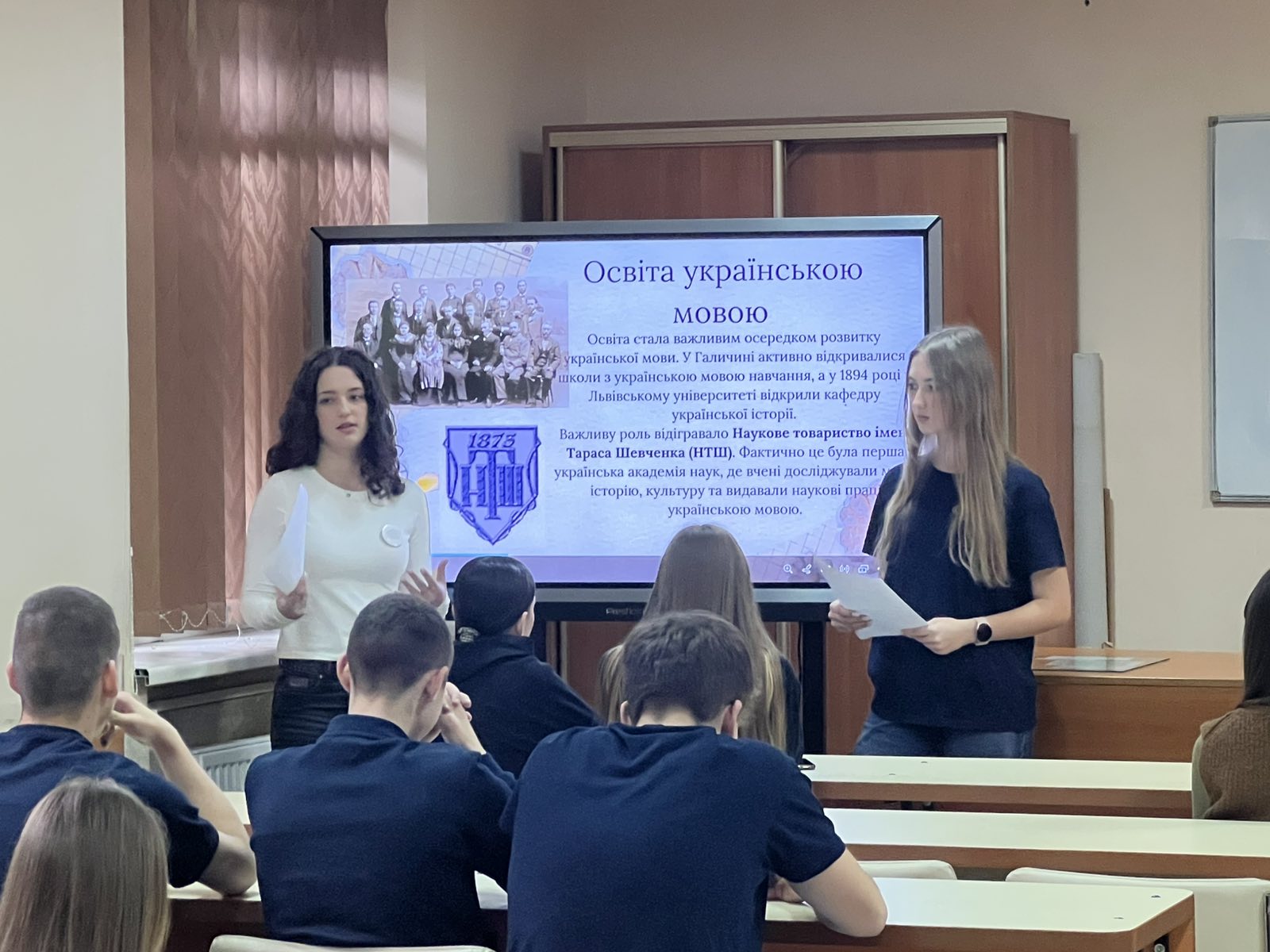 В рамках конференції: "Наука рідною мовою", 12 березня, в гімназії працювала історична секція. Учениці 9-х класів Онишкевич Юстина, Гриців Вероніка, Чабан Єва, Мальцева Вікторія та Білинська Єва презентували свої дослідження, що стосувалися різних аспектів розвитку української мови та науки впродовж XIX століття. Юні дослідниці відзначили, що питання національного відродження української нації були основоположними у історичному процесі того часу.