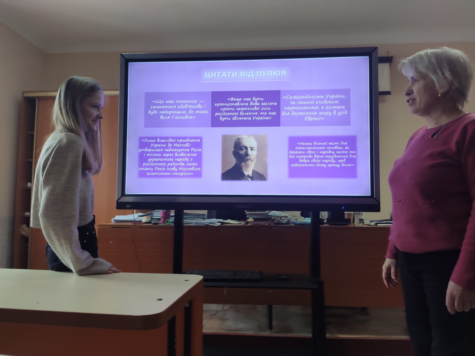 Учні, знайшовши цікаву інформацію про Івана Пулюя, - висвітлили її в проєктах, підготували доповіді та короткі історичні довідки: "Вулиця І. Пулюя у Львові", "У яких країнах жив та творив Іван Пулюй", "І. Пулюй електризував Чехію".