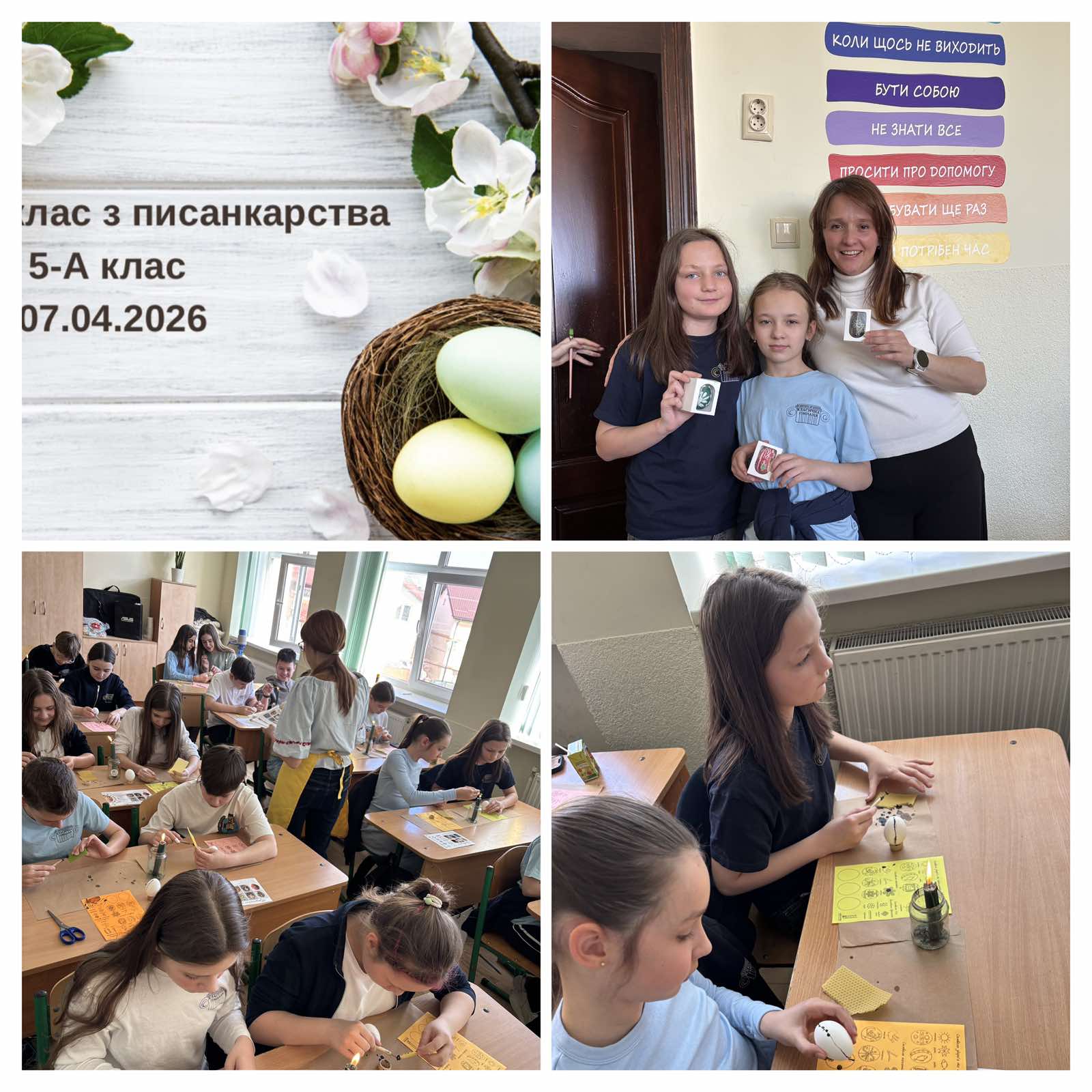 7 квітня учні 5-А класу разом з наставником Саламахою О.В. та майстринями п. Іриною та. п. Зоряною взяли участь у майстер-класі з писанкарства, де кожен учень зміг доторкнутися до давнього українського мистецтва. Пʼятикласники з неймовірним захопленням виводили воском перші візерунки, дізнавалися про значення символів та магію кольорів. Кожна писанка вийшла унікальною: хтось малював традиційні зірки і вербові гілочки, а хтось додавав авторські елементи. Тепер наші оселі прикрашатимуть власноруч створені обереги.