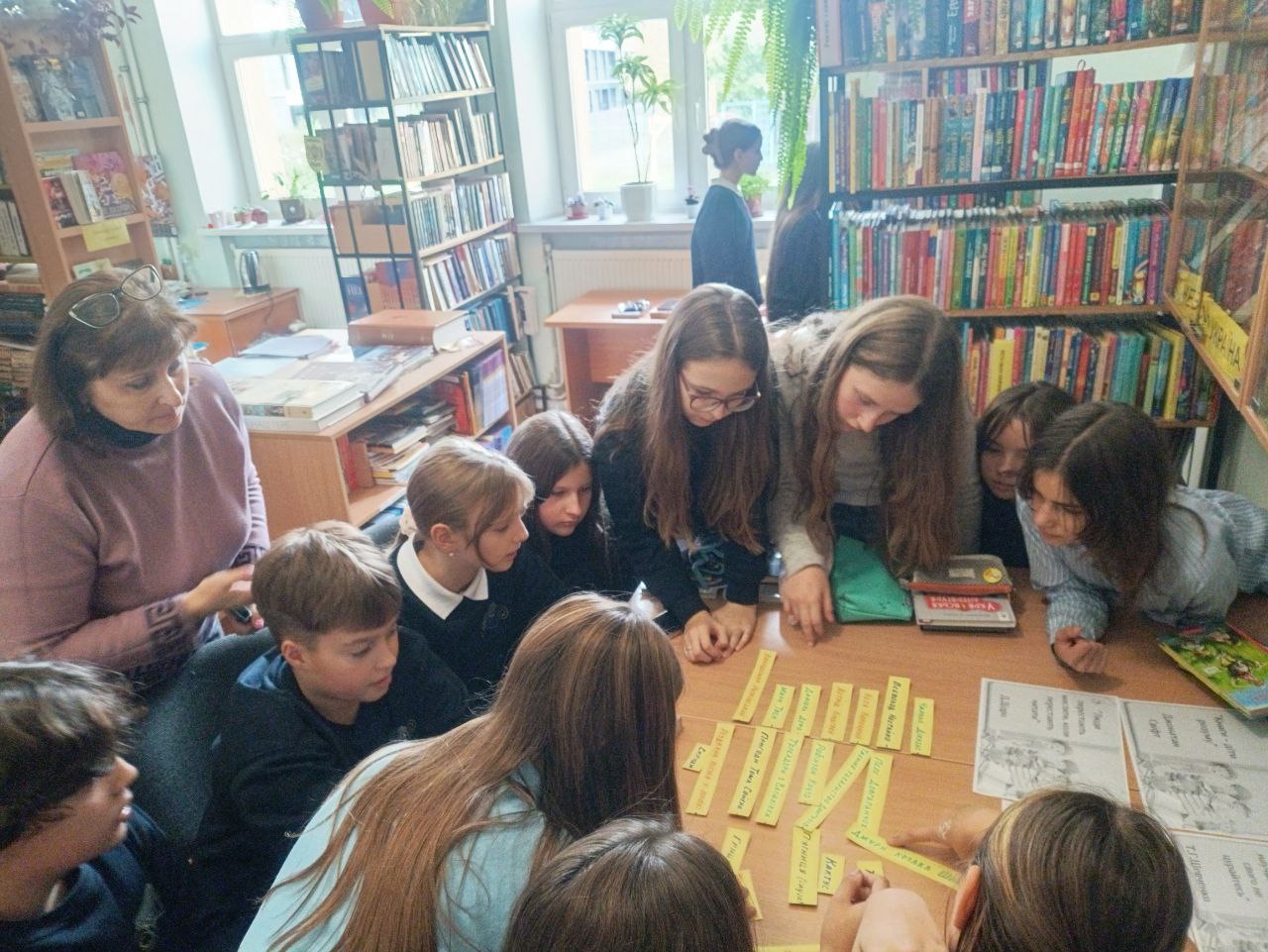 У рамках Всеукраїнського місячника шкільних бібліотек 16.10.2024 р. бібліотекарка Саладь Зоряна та вчителька української літератури Люкас Ірина провели із учнями 7-В класу бесіду на тему: "Розвивай свій розум - читай!". За круглим столом у приміщенні гімназійної бібліотеки семикласники у формі літературної гри пригадали вивчені твори зі шкільної програми, обговорили вислови відомих письменників про книгу та перлини народної мудрості у прислів'ях і приказках. Учням нагадали правила користування бібліотекою, ознайомили із розмаїттям художньої та наукової літератури, заохотили до активного читання.
