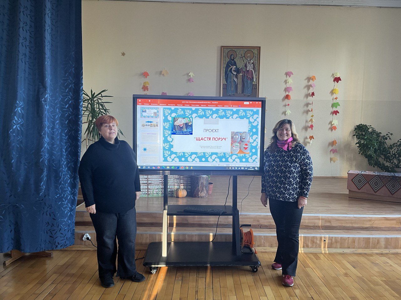 Разом з вчителем ЗБД Гражиною Вуєк психолог Галина Возняк представили спільний проєкт “ЩАСТЯ ПОРУЧ”, до якого залучили вчителів та аніматорську групу старшокласників, ознайомили з тематикою проведених уроків-тренінгів та інтегрованих уроків.