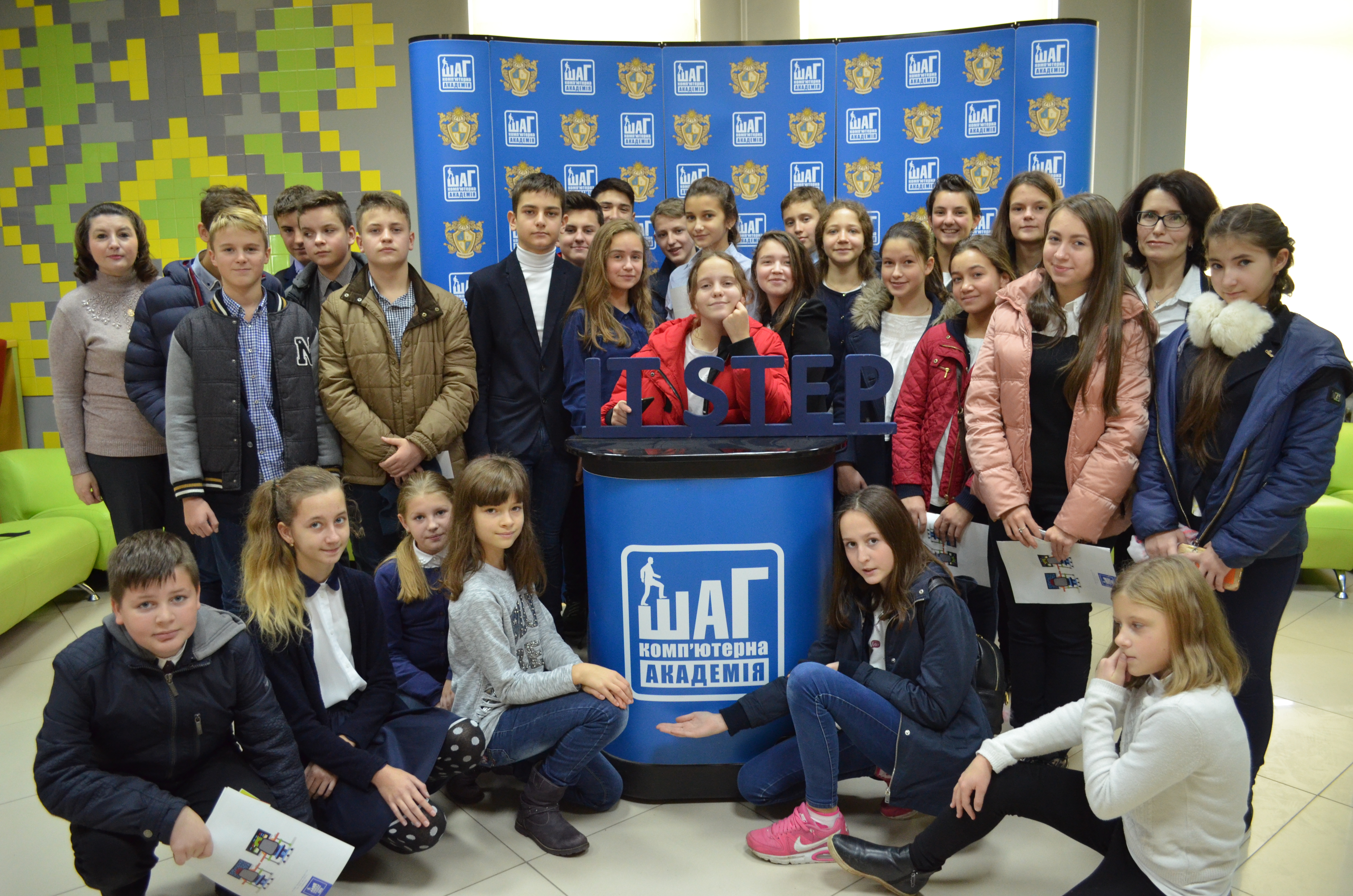 27 жовтня ПВНЗ "Комп'ютерна Академія "ШАГ" гостинно приймала учнів 6-Б та 8-А класів та їх класних наставників Харитонову М. Р. та Середницьку І. Я. Похмурі вулиці Львова, що заглядали у вікно автобуса, скоро змінилися на стіни залу, оформленого в стилі лофт. Завідувач кафедри фундаментальної підготовки IT STEP University Бордуляк М. Т. зібрала тут учнів гімназії і розказала про важливість комп'ютерних знань у сучасному суспільстві та програми Академії як для учнів 9-11 класів, так і для людей, які обрали комп'ютер і його можливості засобом самореалізації. Асистенти доповідачки розповіли про більш реалістичні результати людської думки: службу компютера людині, яка побудувала в долині Шеньч-Жень місто майбутнього і примусила мудрі машини служити комфорту і безпеці; керівник гуртка робототехніки потішив і водночас приголомшив своїм винаходом:маленька рукаста машина з азартом складала кубик рубика. Було цікаво й захоплююче, особливо, коли серед нас уже виявилися учні певних комп'ютерних курсів в академії. І наостанок: результати нашої фотосесії...