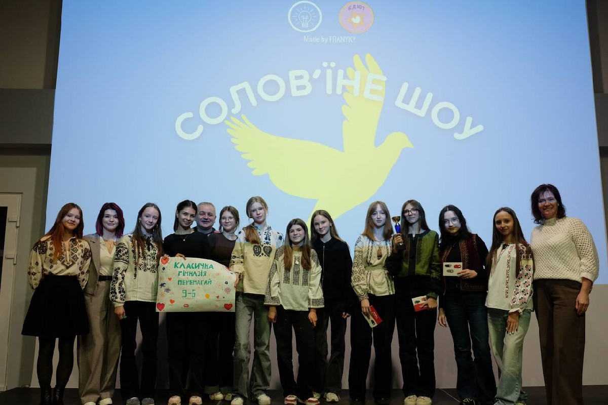 3, 11 та 13 листопада проходило «Соловʼїне шоу», що організувало учнівське самоврядування Франківського району «Франики». «Солов’їне шоу» — це мовний конкурс, у якому учні демонструють знання української мови, швидкість мислення та вміння працювати в команді. Цьогорічні змагання проходили у кілька етапів де зібралися найсильніші знавці. Учениці 9-тих класів нашої гімназії — Панчишин Анна та Цимбрівська Емілія з 9-Б, а також Галушка Емілія з 9-А — успішно подолали всі випробування.
