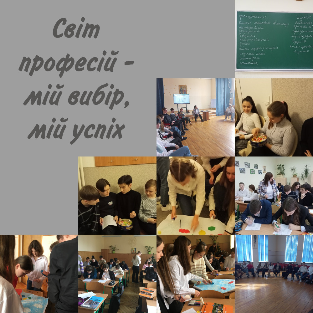 13-14 березня психолог Возняк Галина Романівна та Козак Ірина Іванівна разом з психологом пані Ольгою Капраль (матір'ю учениць 7-А та 10-А класів) розпочали цикл занять з учнями 9-х класів «Світ професій - мій вибір, мій успіх».