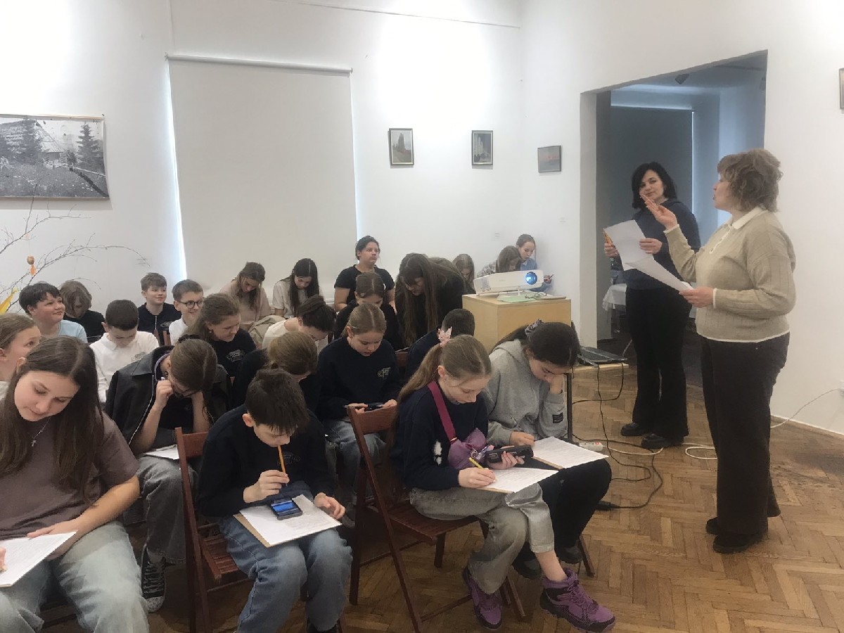 9 березня учні 6-А разом з учителями української мови - Люкас Іриною Володимирівною та Боцко Оксаною Іванівною мали музейний урок-Твір-опис природи за картиною. Гімназисти працювали в робітні Івана Труша, вони прослухали лекцію мистецтвознавця про аналіз картин, певні терміни живопису, вчителі мова розповіли про особливості написання твору- опису, тоді зробили підготовчу роботу до письмової роботи за репродукцією картини Івана Труша «Захід сонця». Урок дуже сподобався гімназистам, інтеграція живопису та української мови була результативною.