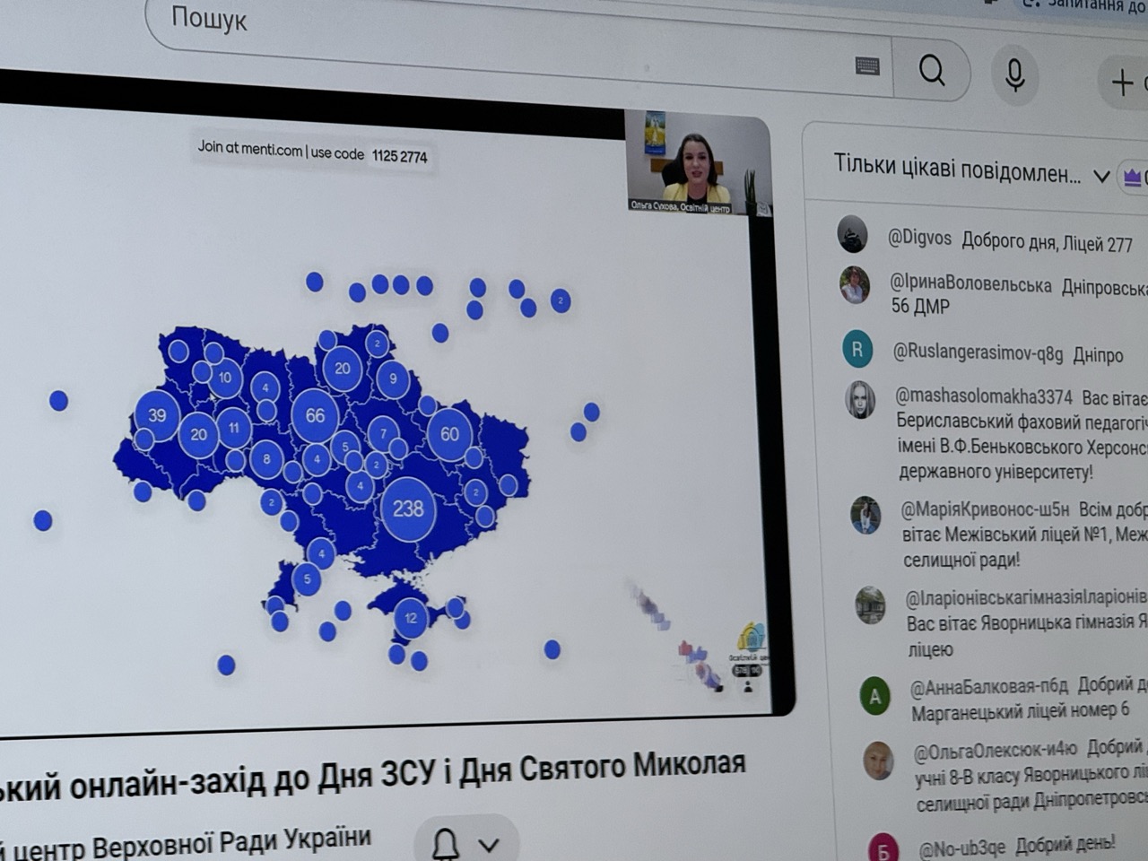 05 грудня учні 10-х класів, разом із Залужним А.П., взяли участь у Всеукраїнському онлайн-заході до Дня Святого Миколая і Дня Збройних Сил України, який організував Освітній Центр Верховної Ради України.