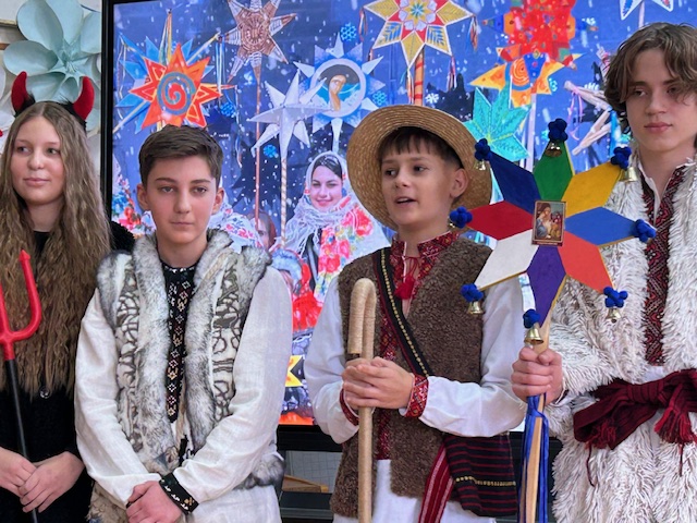 Різдвяні свята - це завжди очікування дива… Колядки, родина збирається разом, всі радіють... А ще коли приходить гурт колядників, Вертеп, ми починаємо перетворюватись на дітей усі. І це зовсім не залежить від віку. Все це ми побачили на святі, яке влаштували учні 8-Б класу 22 грудня. Це був традиційний вертеп, який учні запозичили на Івано-Франківщині, звичайно, додавши свої родзинки. Учасниками дійства були всі учні класу. Разом з учителями, батьками, учнями гімназії- всі поринули у казку, яку нам завжди дарує Різдво!