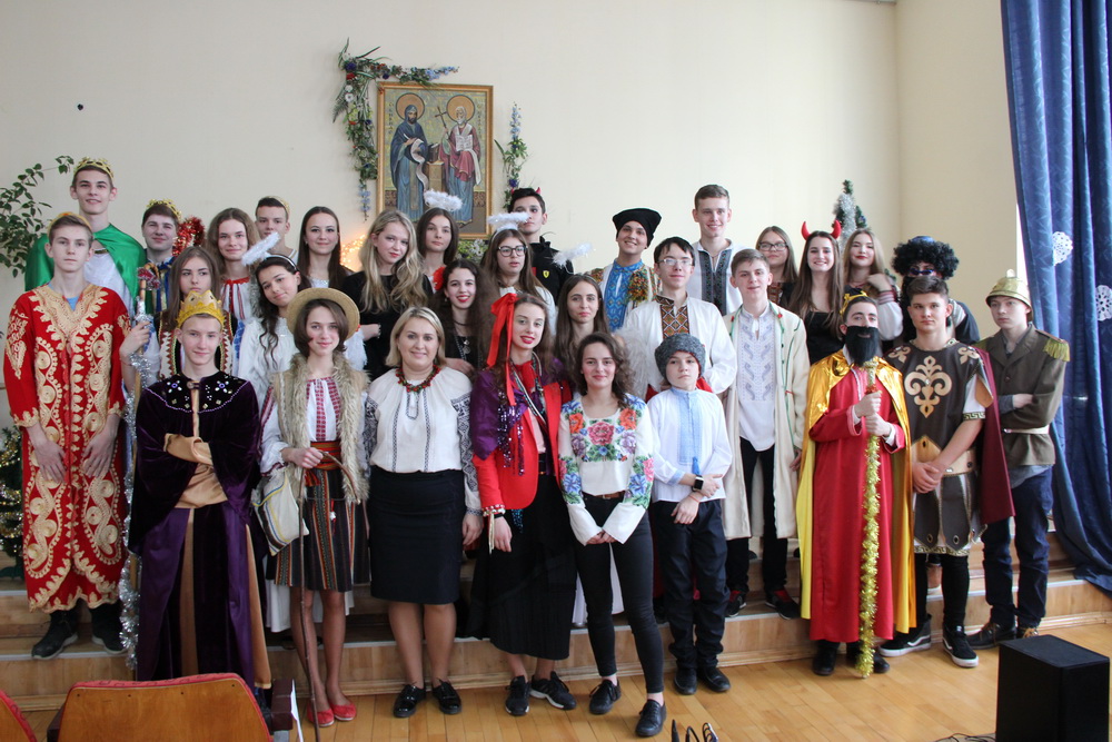 традиційний український вертеп, відтворивши сюжет чудесного народження Ісуса