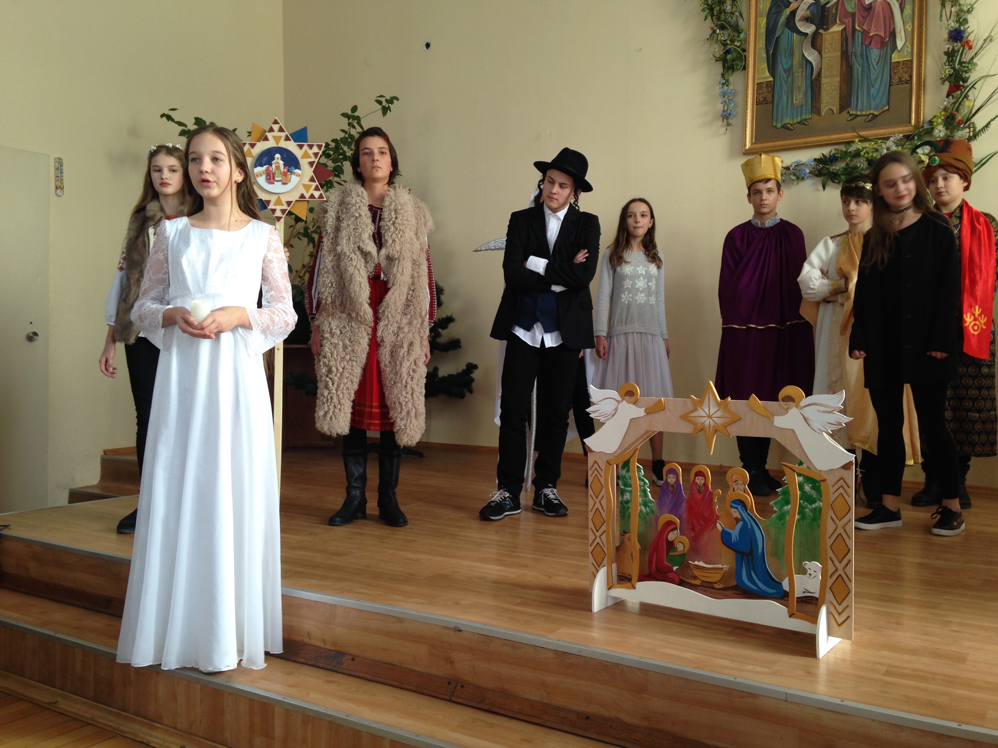 26 січня розлого залунала коляда коридорами Гімназії. На цей раз вона зібрала глядачів (а їх було дуже багато), щоб провести Різдво-2018. 8-А клас показав гімназистам вертепну виставу. Миловидні образи, художні костюми, ліричне слово від душі, проникливість дитячого виконання пісень робили це дійство теплим і щирим.